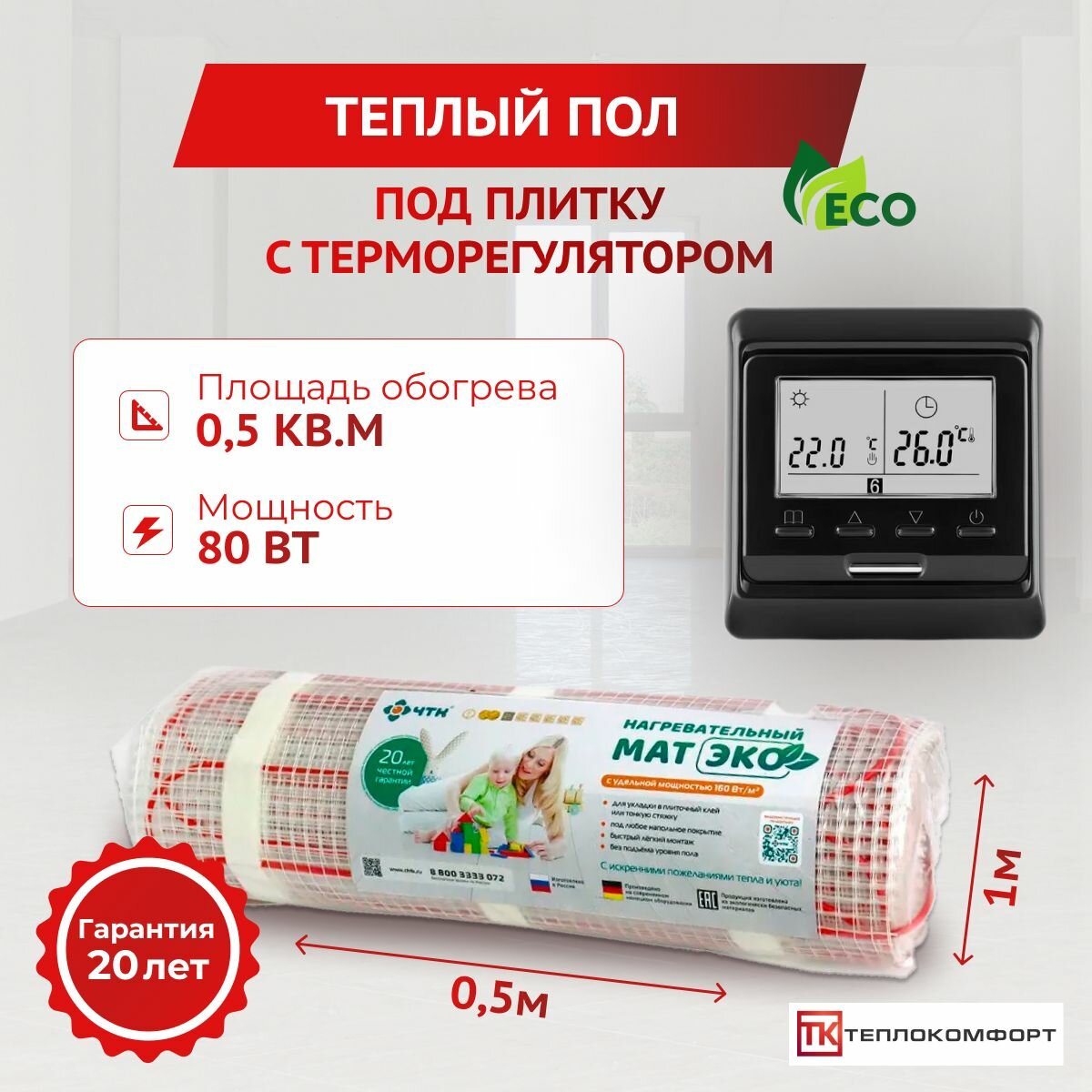 10 цен на Теплый пол электрический под плитку 0,5 м2 с терморегулятором. Нагревательный мат 0.5м. кв Теплокомфорт ЧТК МНД ЭКО