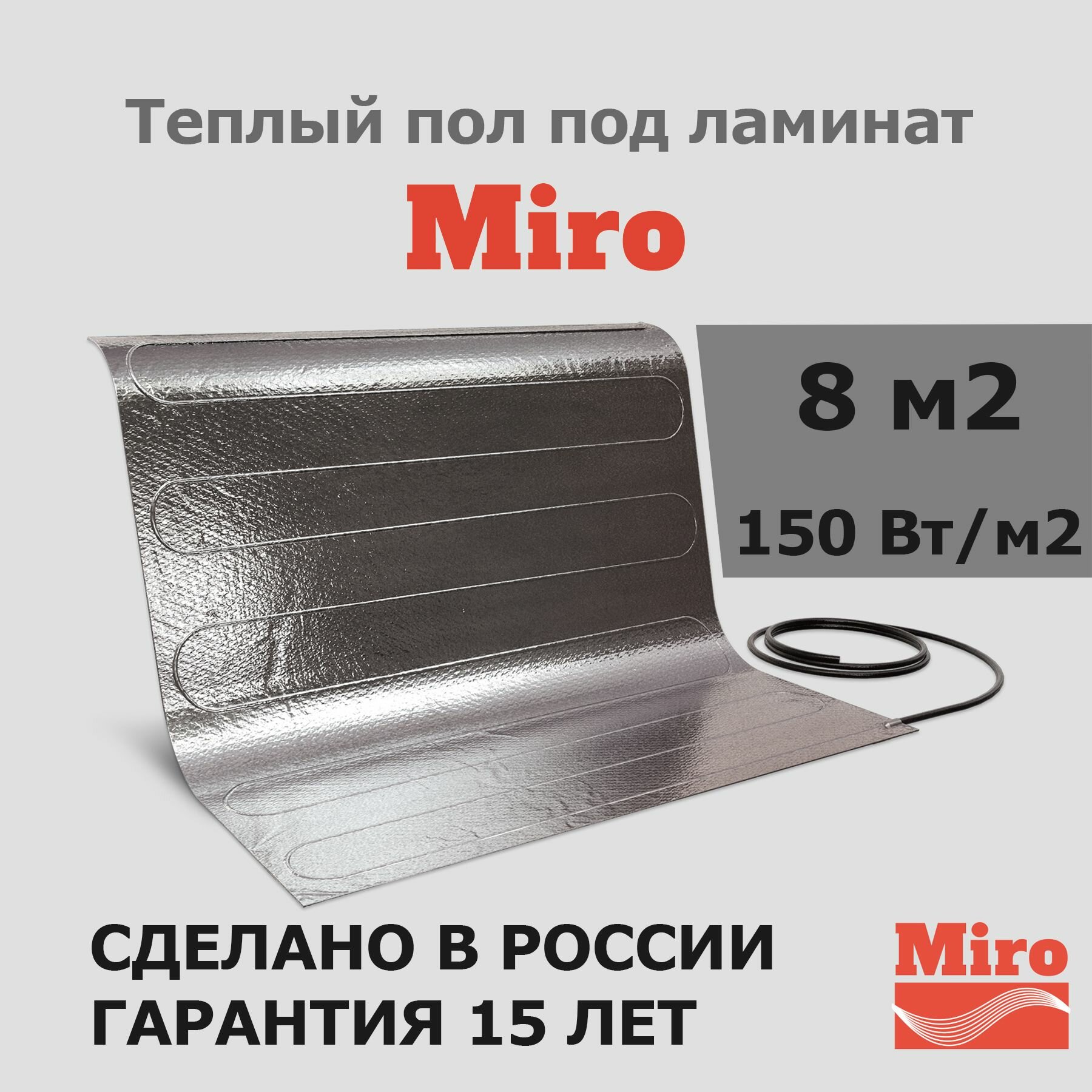Тонкий нагревательный мат теплый пол в фольге Miro 9 м2 / 1350 Вт под ламинат 11 769 ₽