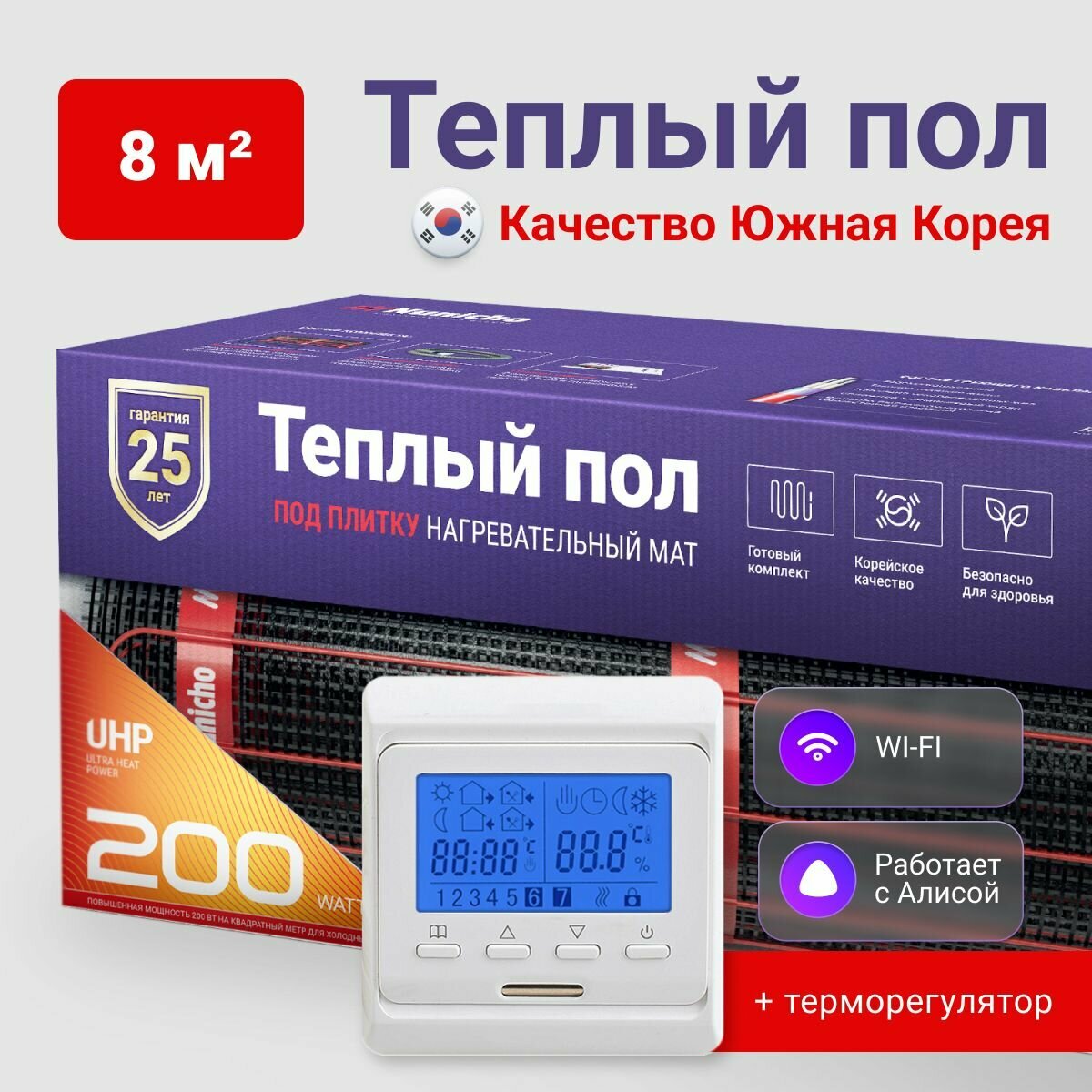 Теплый пол под плитку NUNICHO 8 м2, 200 Вт/м2 с Wi-Fi-терморегулятором M6 белым электрический нагревательный мат информация: