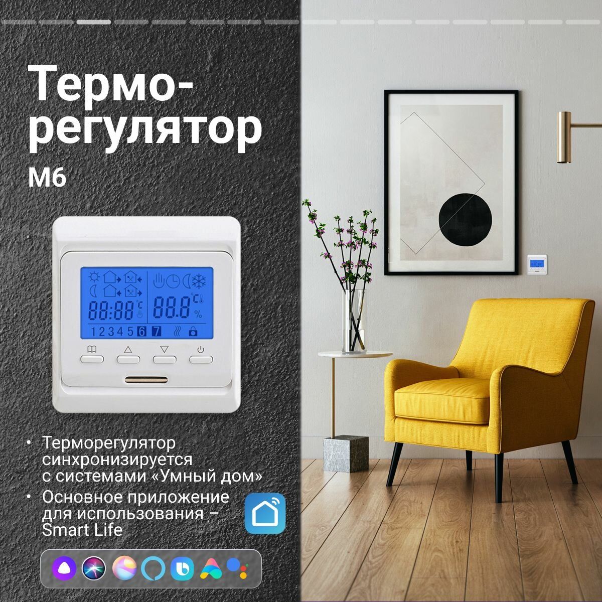 Теплый пол под плитку NUNICHO 1 м2, 200 Вт/м2 с Wi-Fi-терморегулятором M6 белым электрический нагревательный мат 6 285 ₽