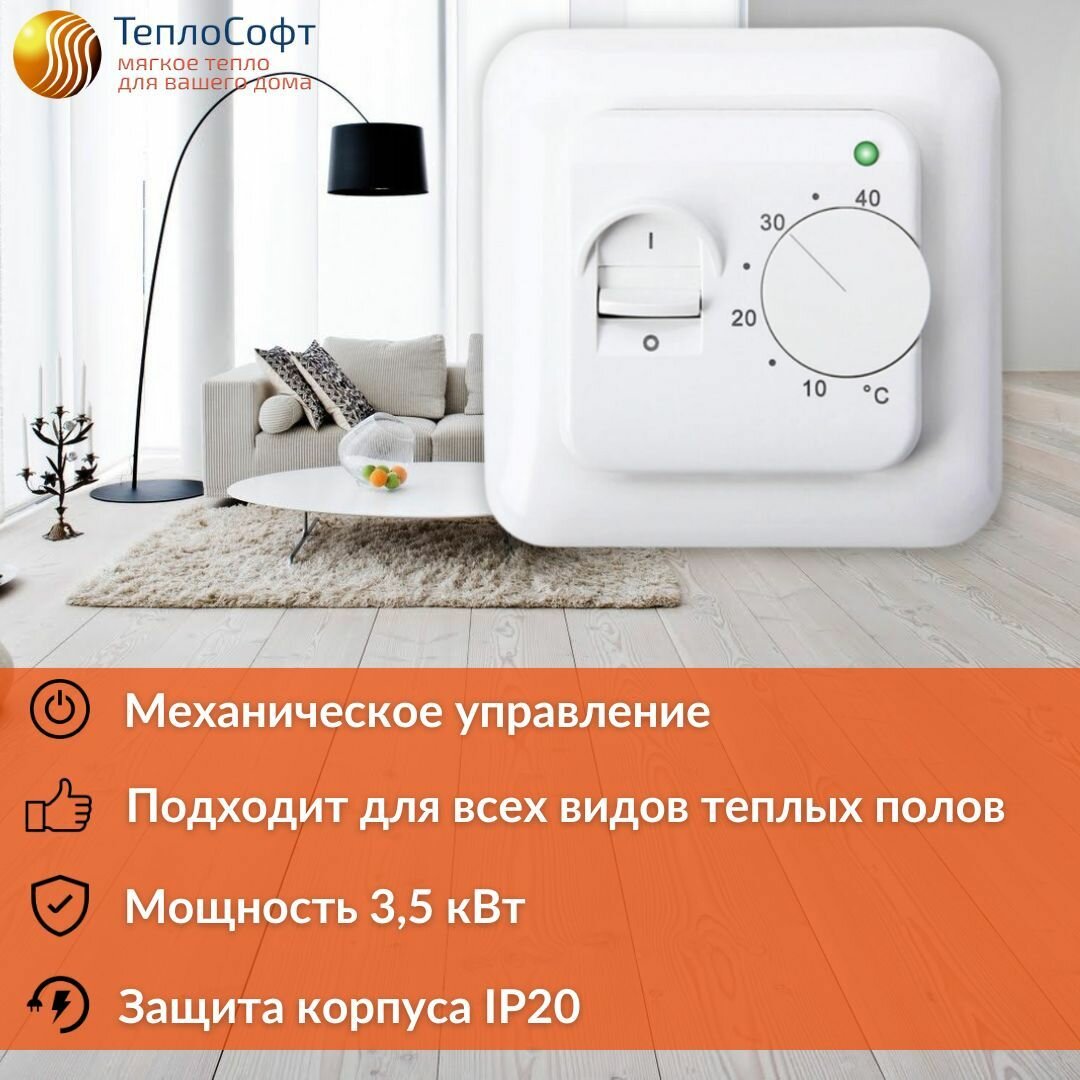 Инфракрасный пленочный теплый пол Теплософт 3,5 м², 770 Вт с терморегулятором