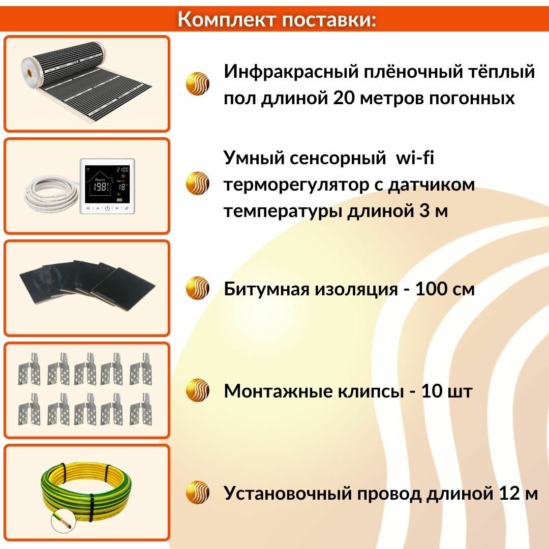 Плёночный электрический тёплый пол Теплософт под ламинат, линолеум, паркет 10м. кв. с умным wi-fi терморегулятором. Инфракрасный мат 10 м2 информация: