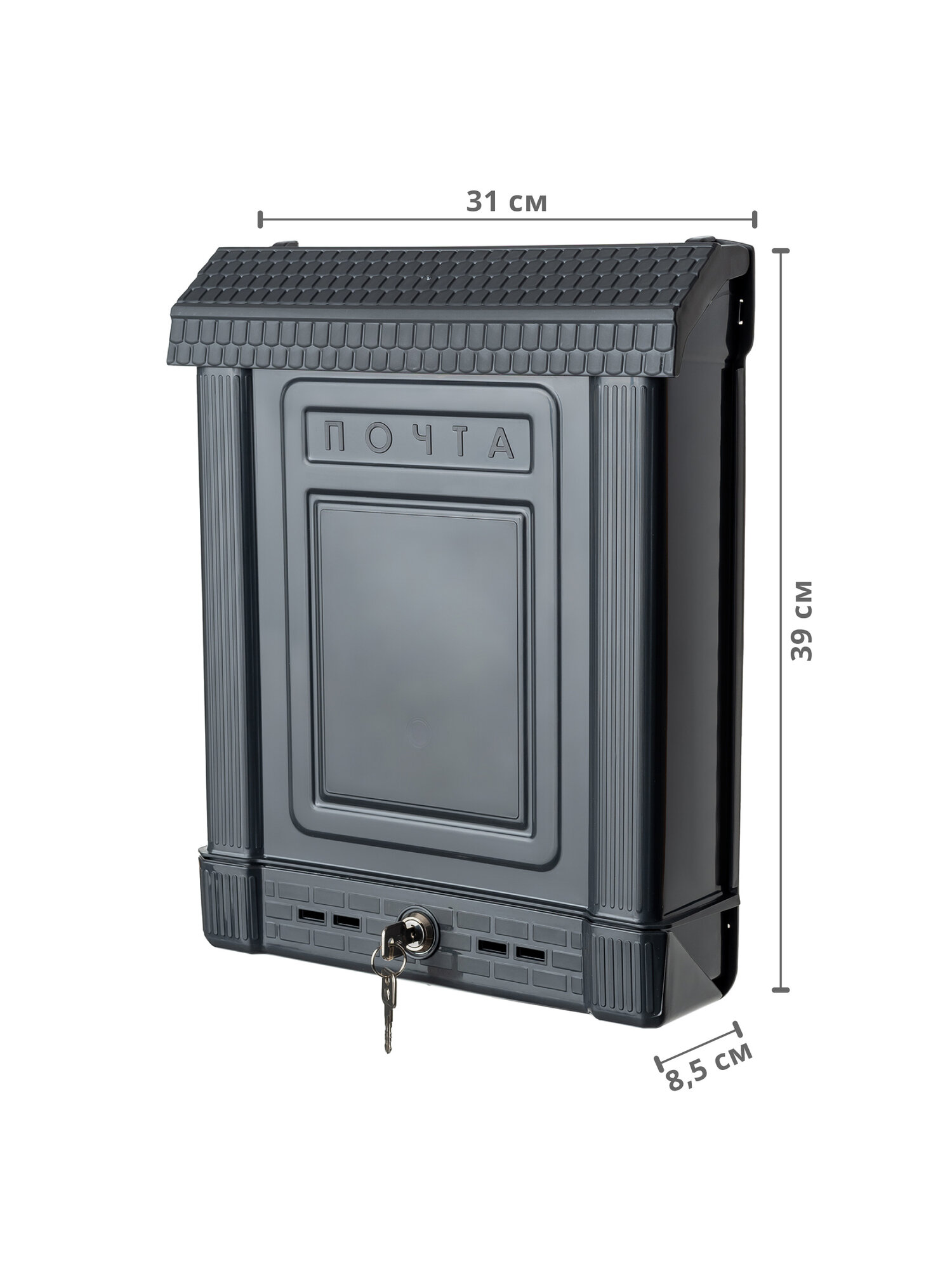 Почтовый ящик уличный с замком для частного дома Альтернатива, пластик, графитовый информация: