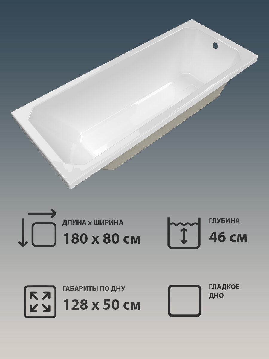 Ванна акриловая Albico Larga 180х80 в комплекте с каркасом информация: