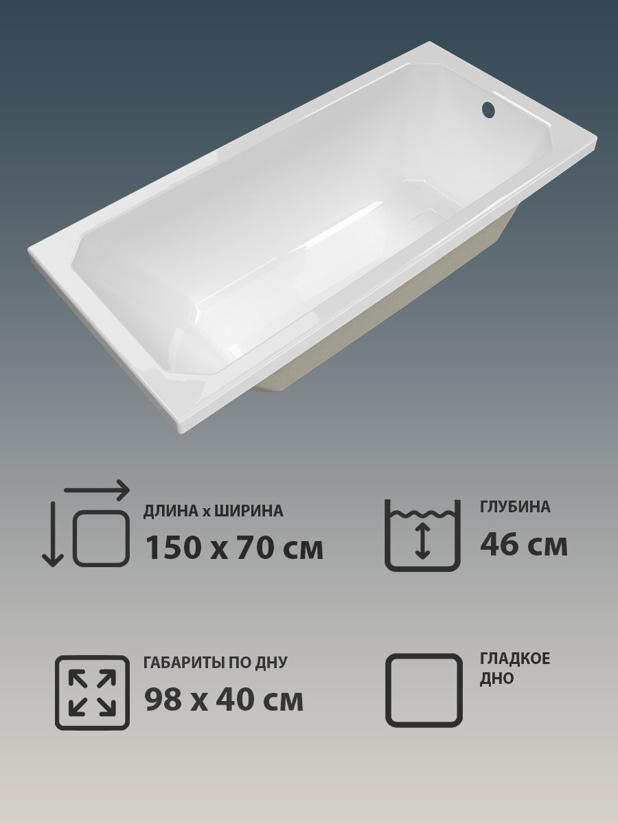 Ванна Gamma 140х70 см, акриловая, на каркасе, экран к ванне Gamma 140