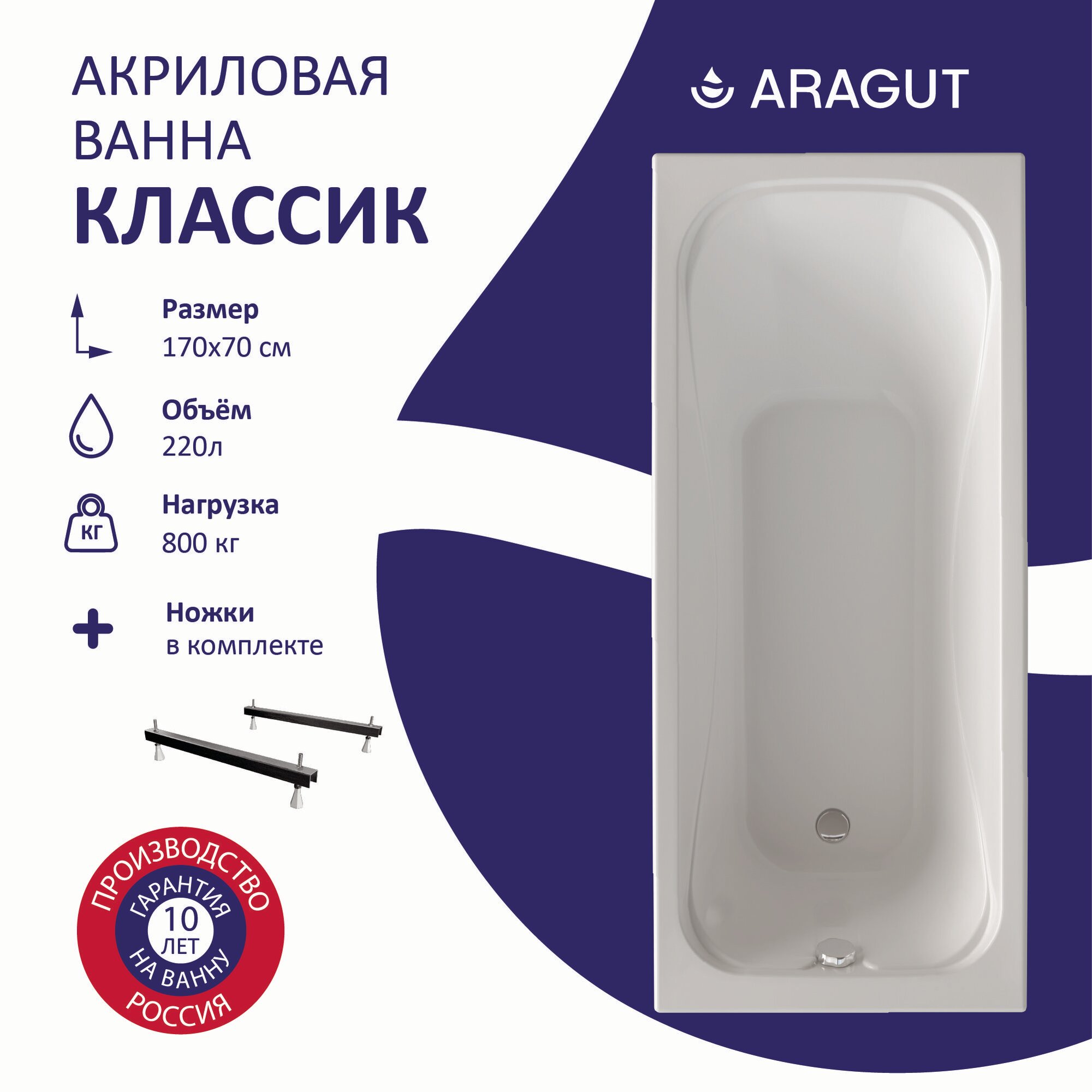 10 цен на Акриловая ванна ARAGUT Классик 170х70 прямоугольная, в комплекте с ножками, белая