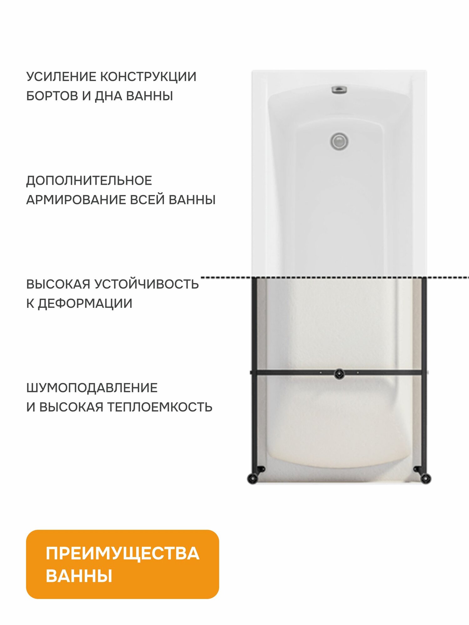 Ванна акриловая 170х75 см INFORM MODULEASY комплект 3в1: ванна левый угол, стальные ножки, слив-перелив 01инф1775лкс2+ 44 597 ₽