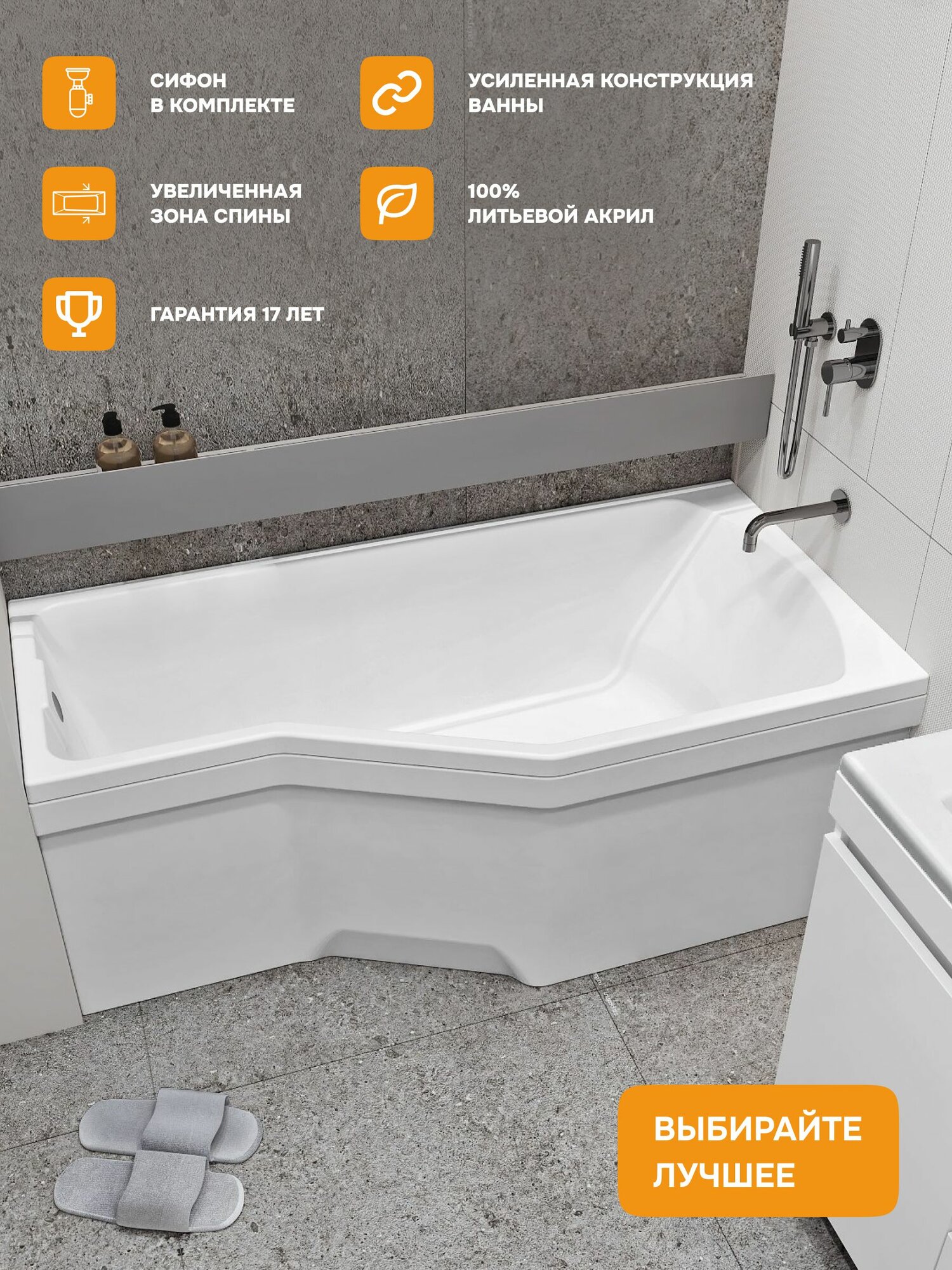 Отзывы на Ванна акриловая 150х75 см INFORM Асимметричная правый угол, 100% сантехнический акрил, MODULEASY 01инф1575п