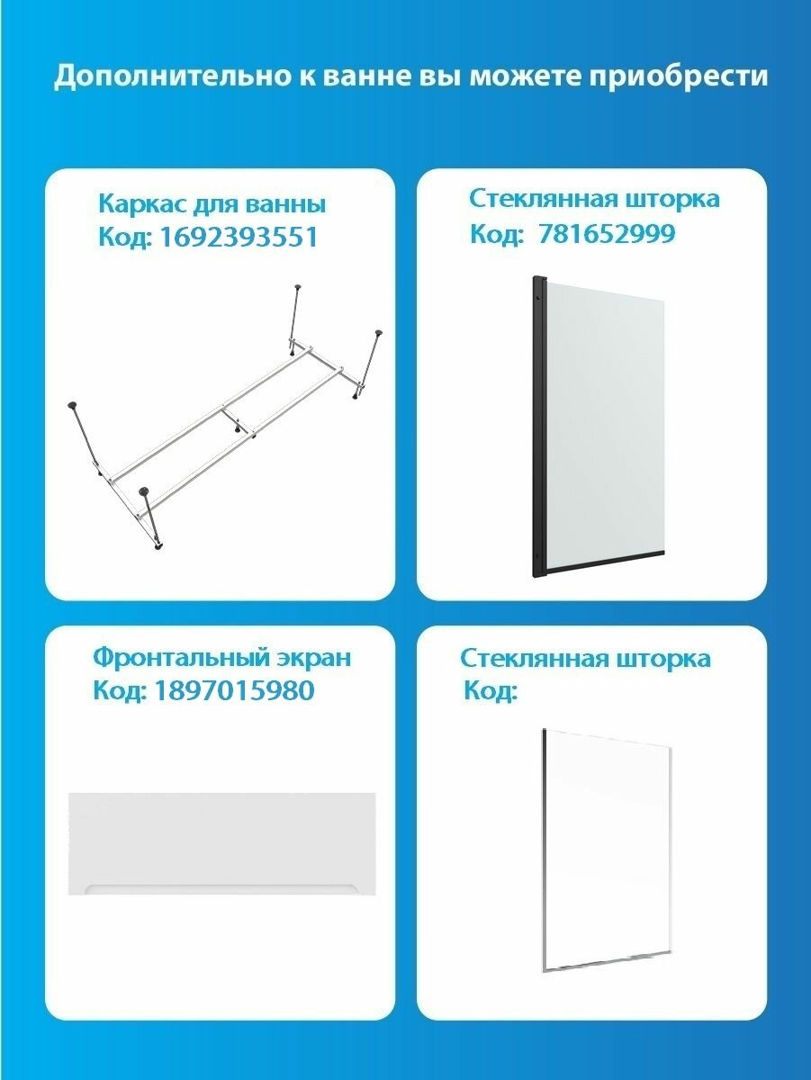 Ванна Gamma 140х70 см, акриловая, на каркасе, экран к ванне Gamma 140
