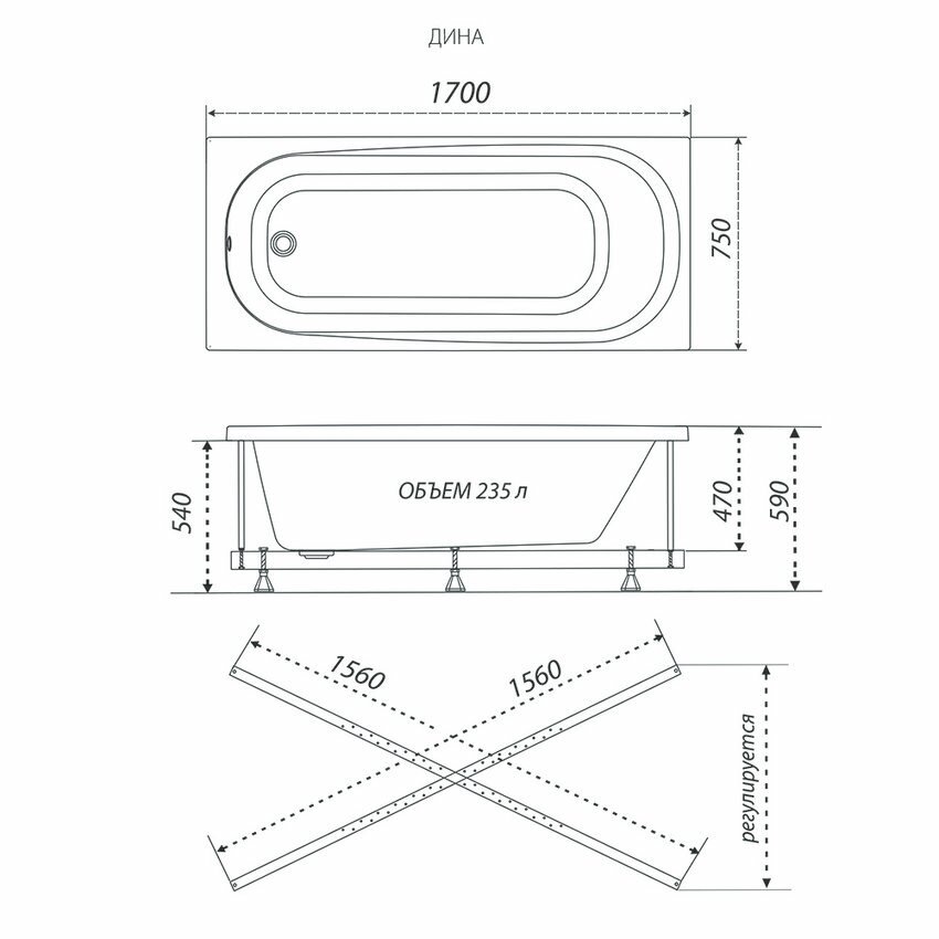 Акриловая ванна Triton Дина 170x75 с каркасом, белая информация:
