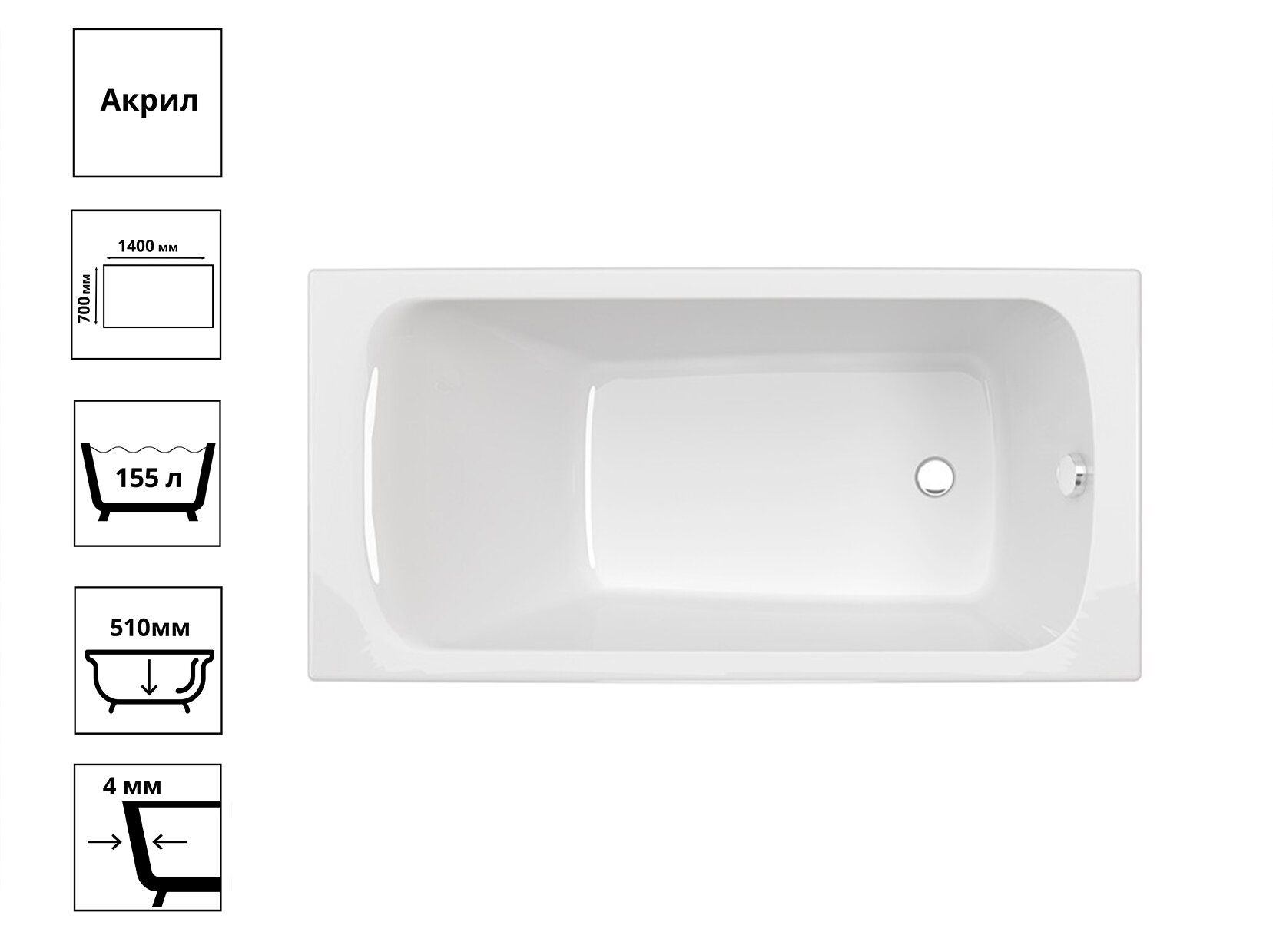 Отзывы на Ванна Gamma 140х70 см, акриловая, на каркасе, экран к ванне Gamma 140