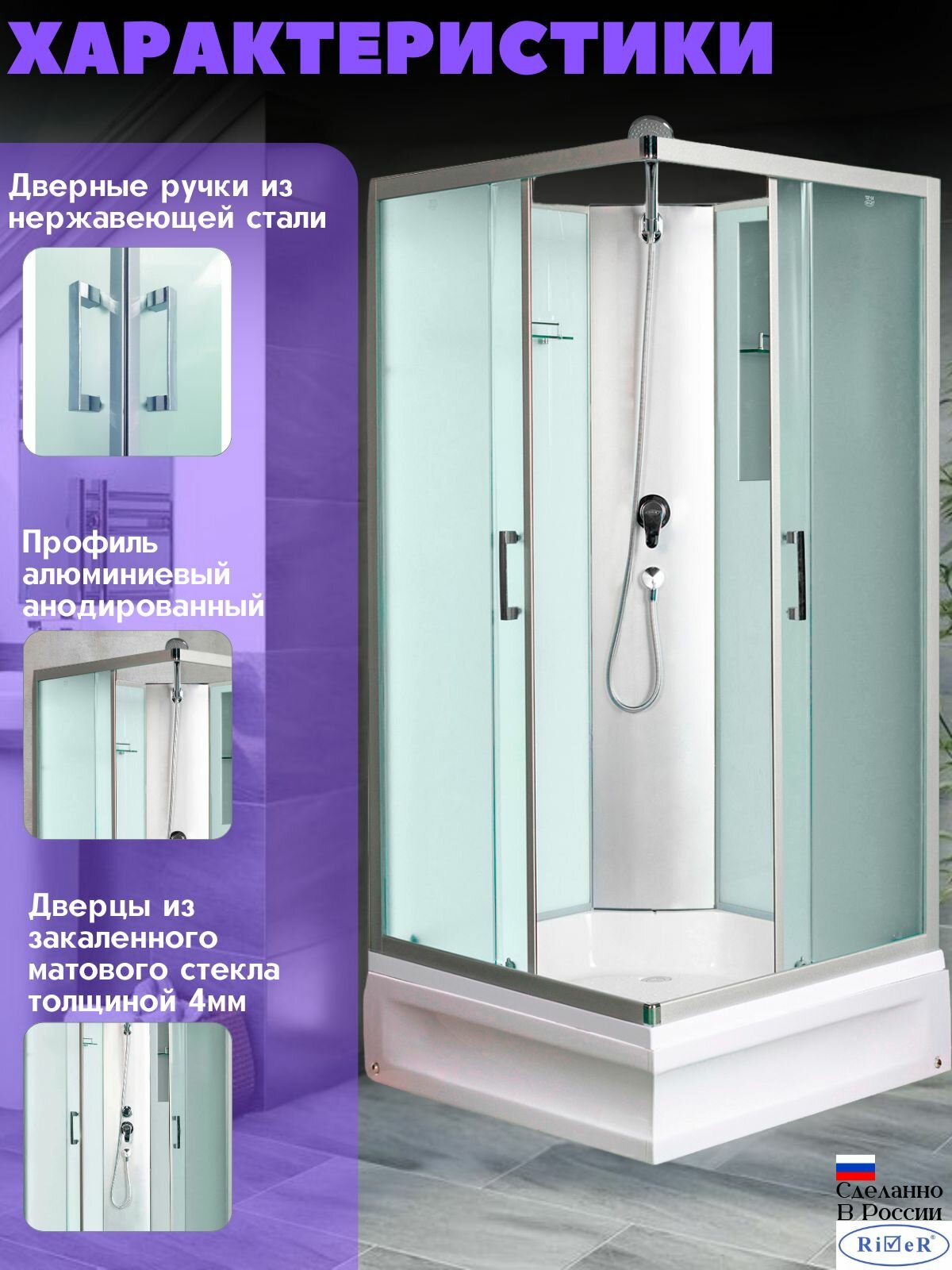 Душевая кабина River QUADRO Б/К 80/24 MT (80x80) средний поддон, стекло матовое, универсальная информация:
