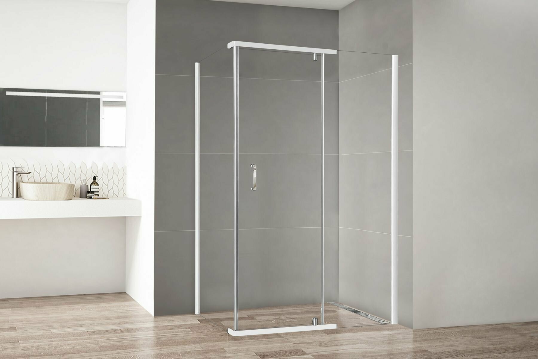 Душевое ограждение уголок SANTREK Iris-CR-900-C-Chrome 900*900*1850 Г-обр. стекло Прозр 6мм, профиль Хром