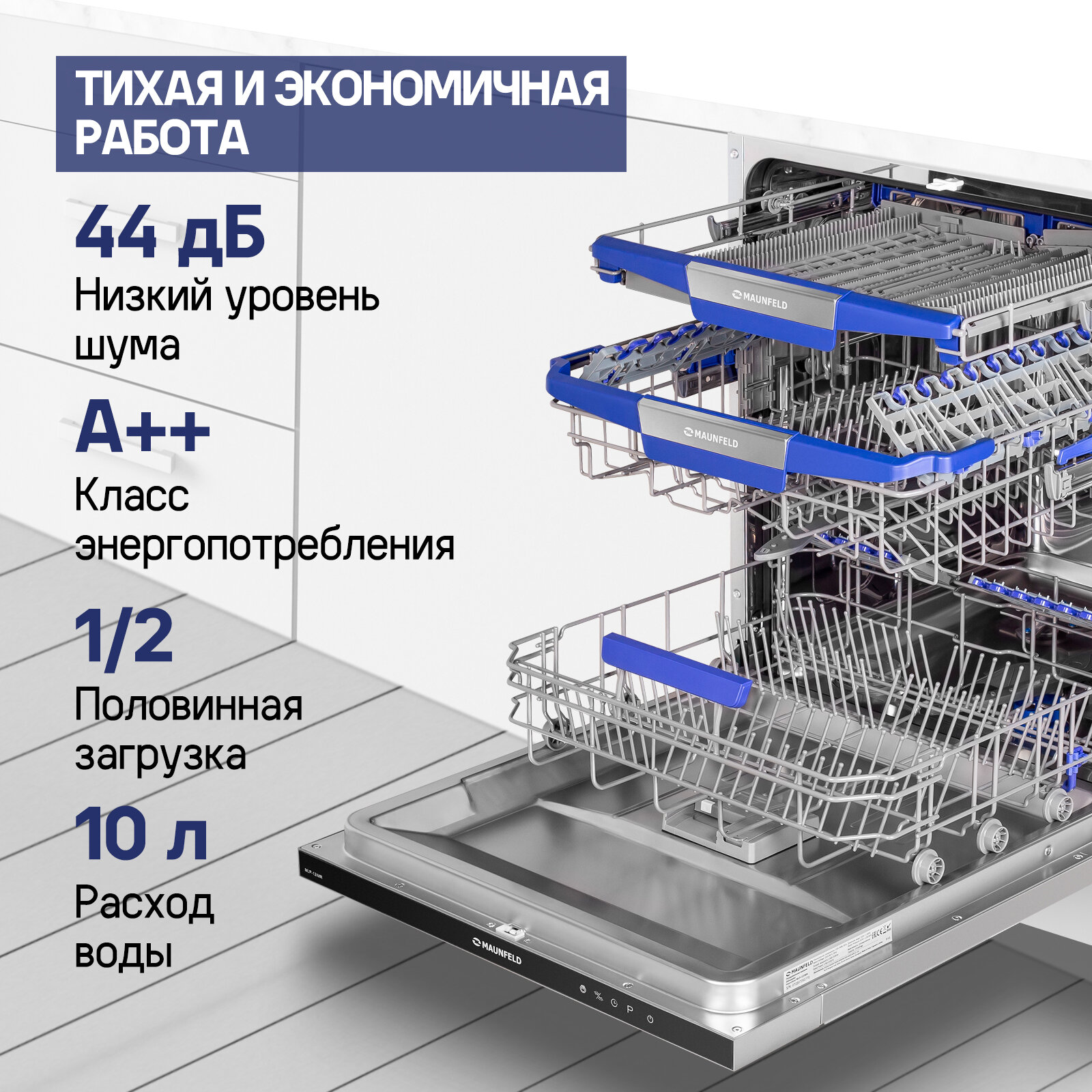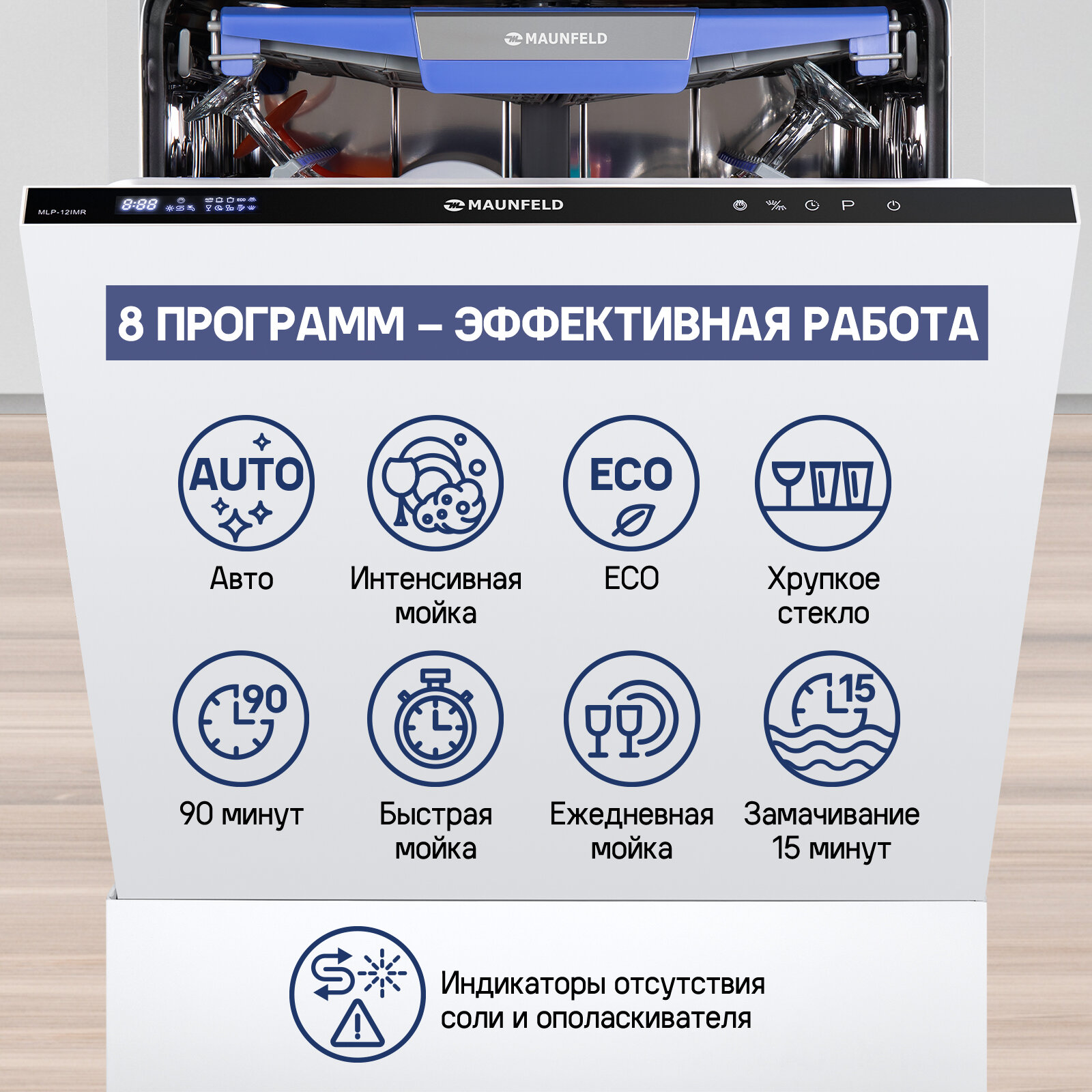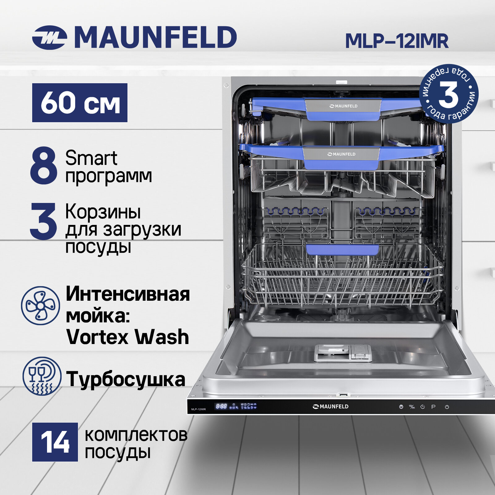 Посудомоечная машина с Vortex Wash, турбосушкой и лучом на полу MAUNFELD MLP-12IMR