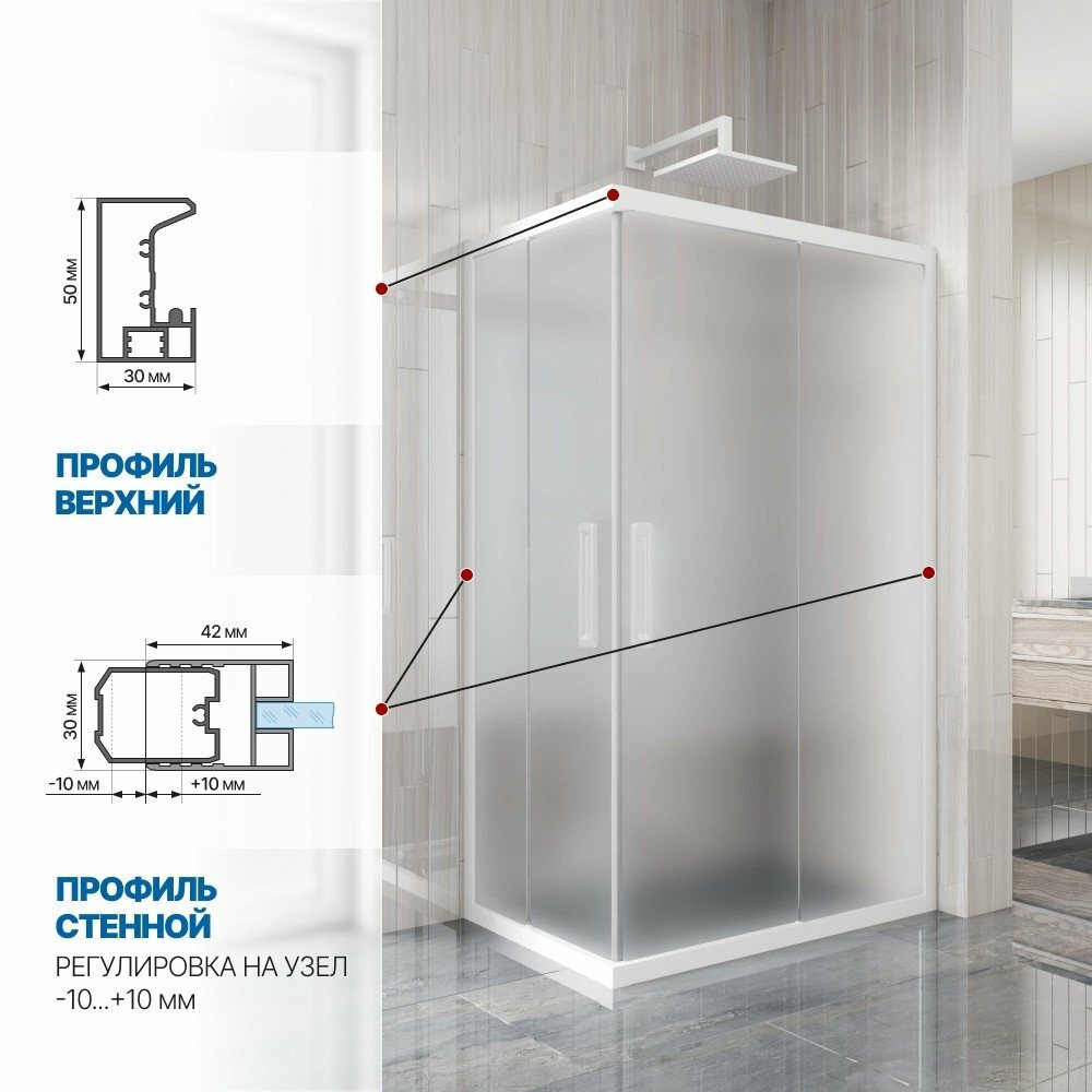 Душевой уголок GWMPKB019RC 95x75 см, цвет фурнитуры белый матовый, цвет стекла матовый, стекло закаленное 6 мм информация: