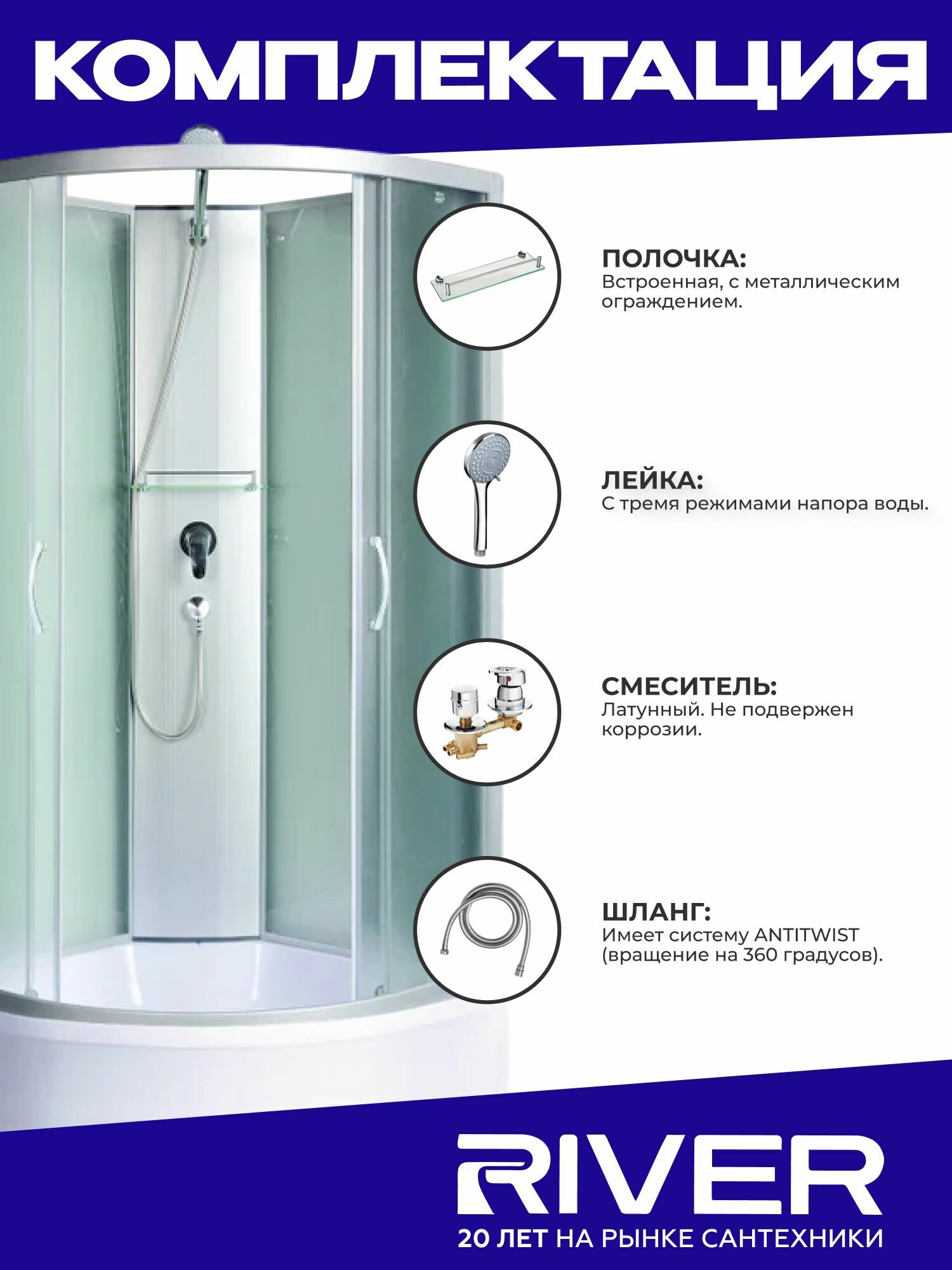 10 цен на Душевая кабина River NARA Б/К XL (100x100) высокий поддон, стекло матовое, универсальная