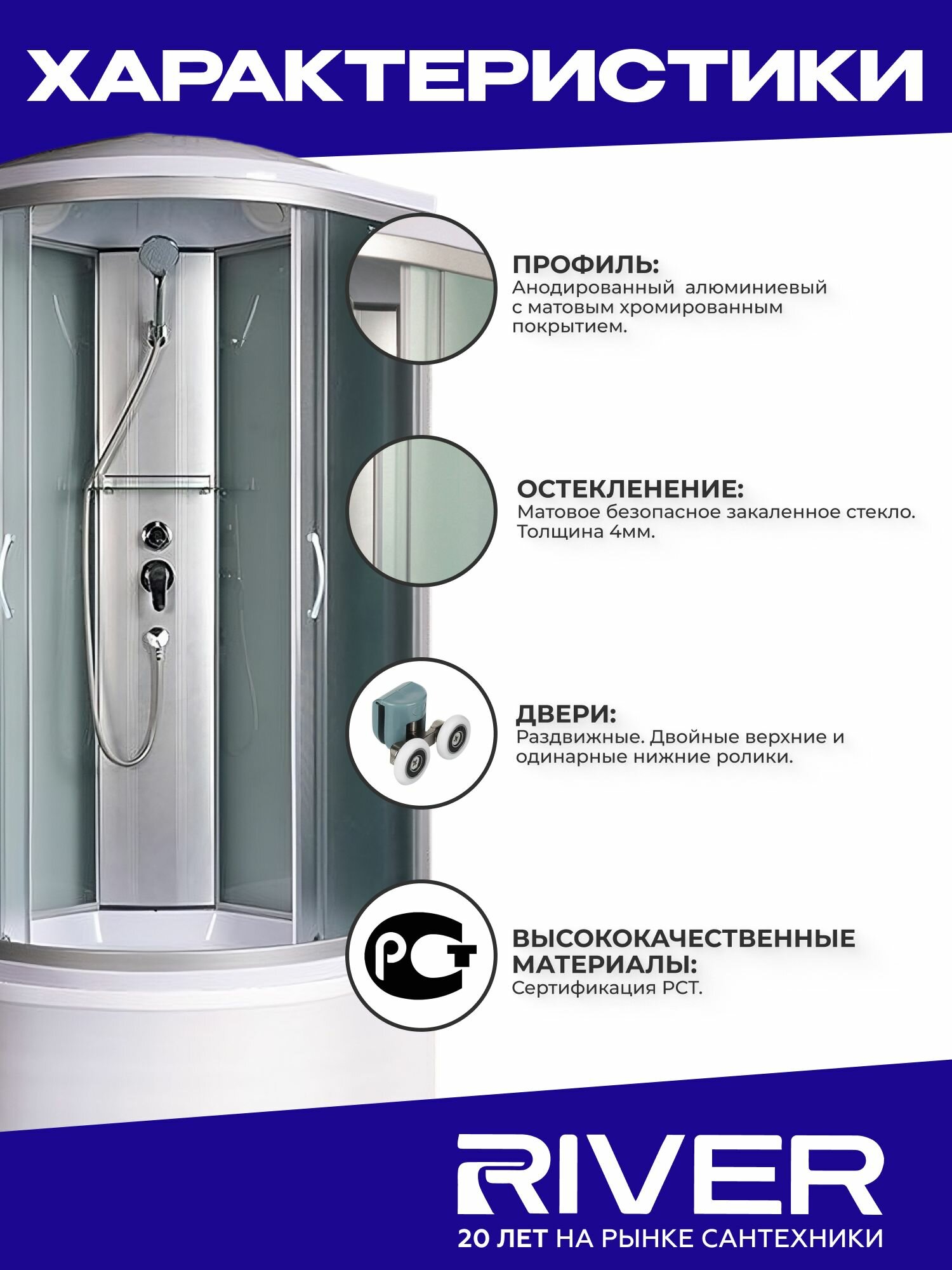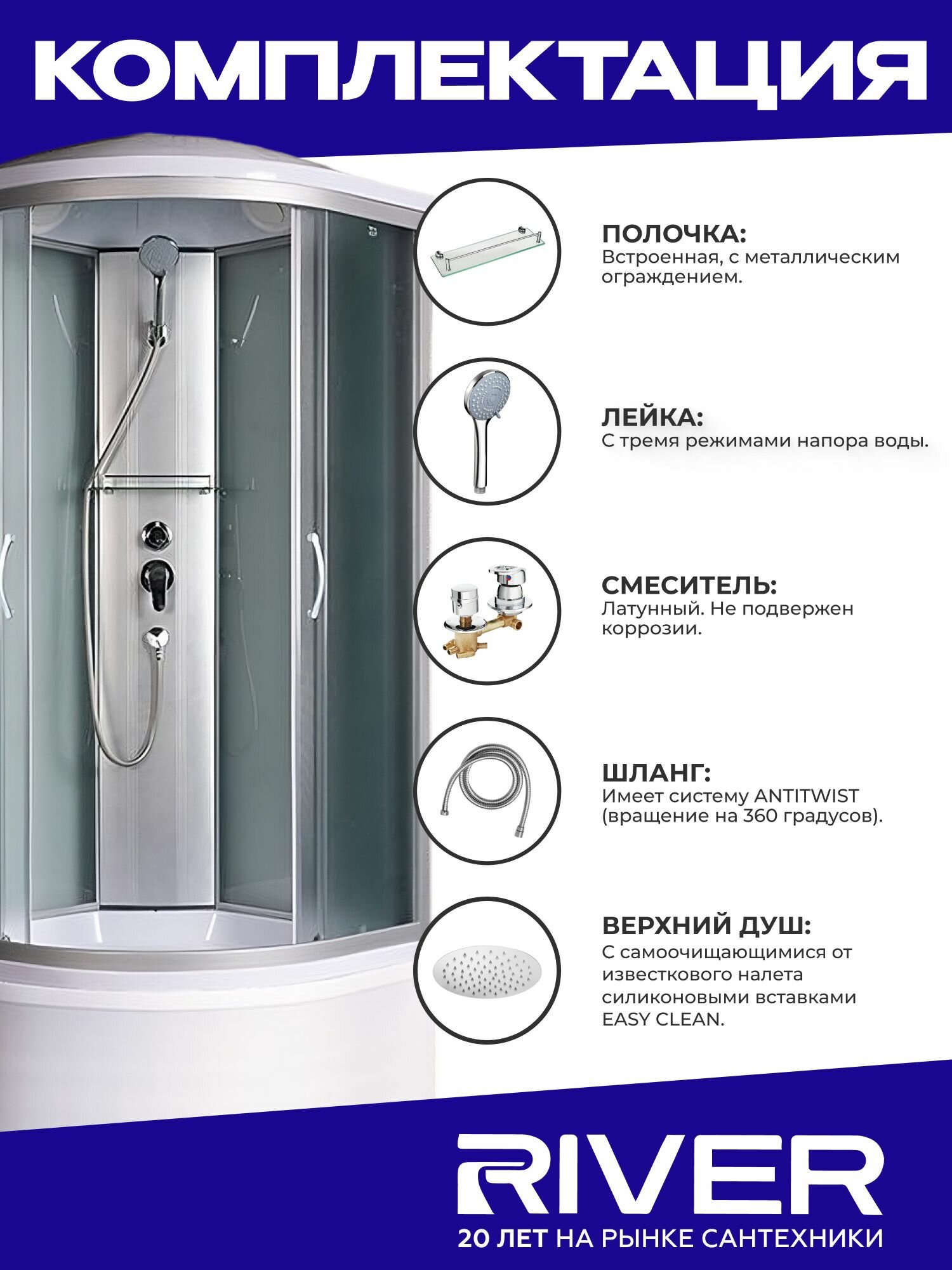Душевая кабина River NARA XL (90x90) высокий поддон, стекло матовое, универсальная информация: