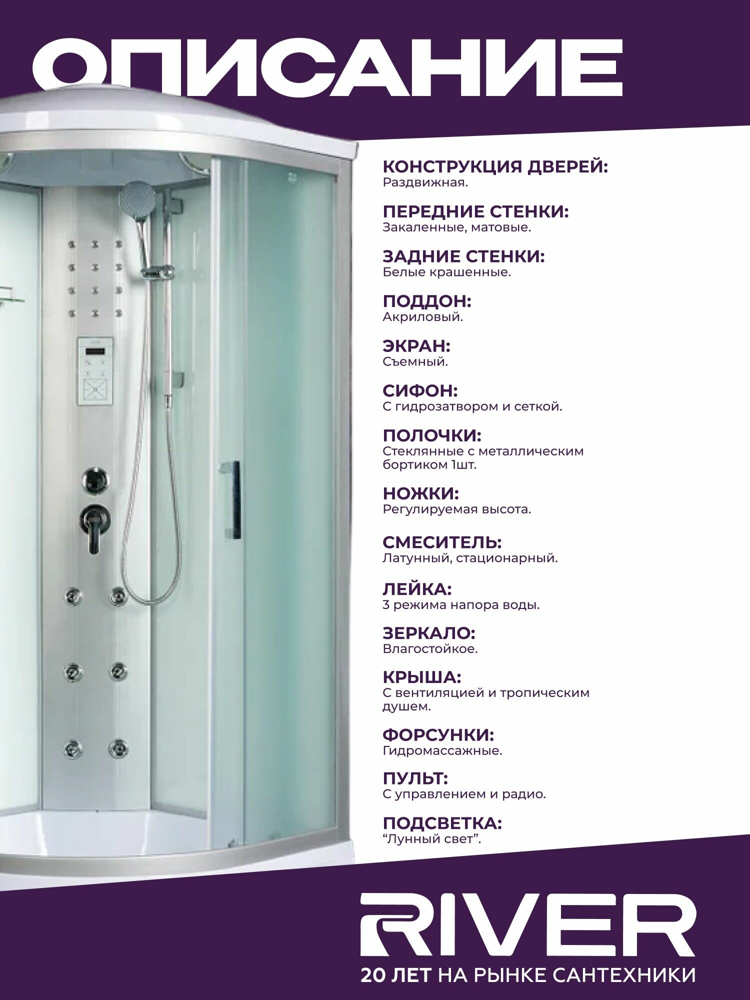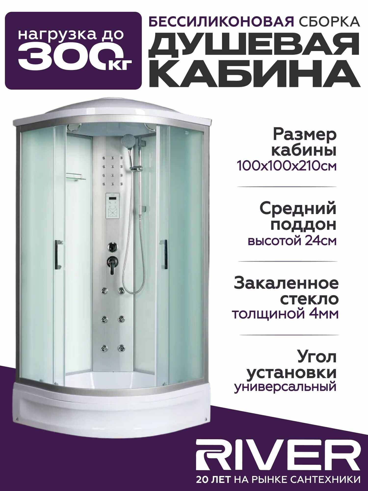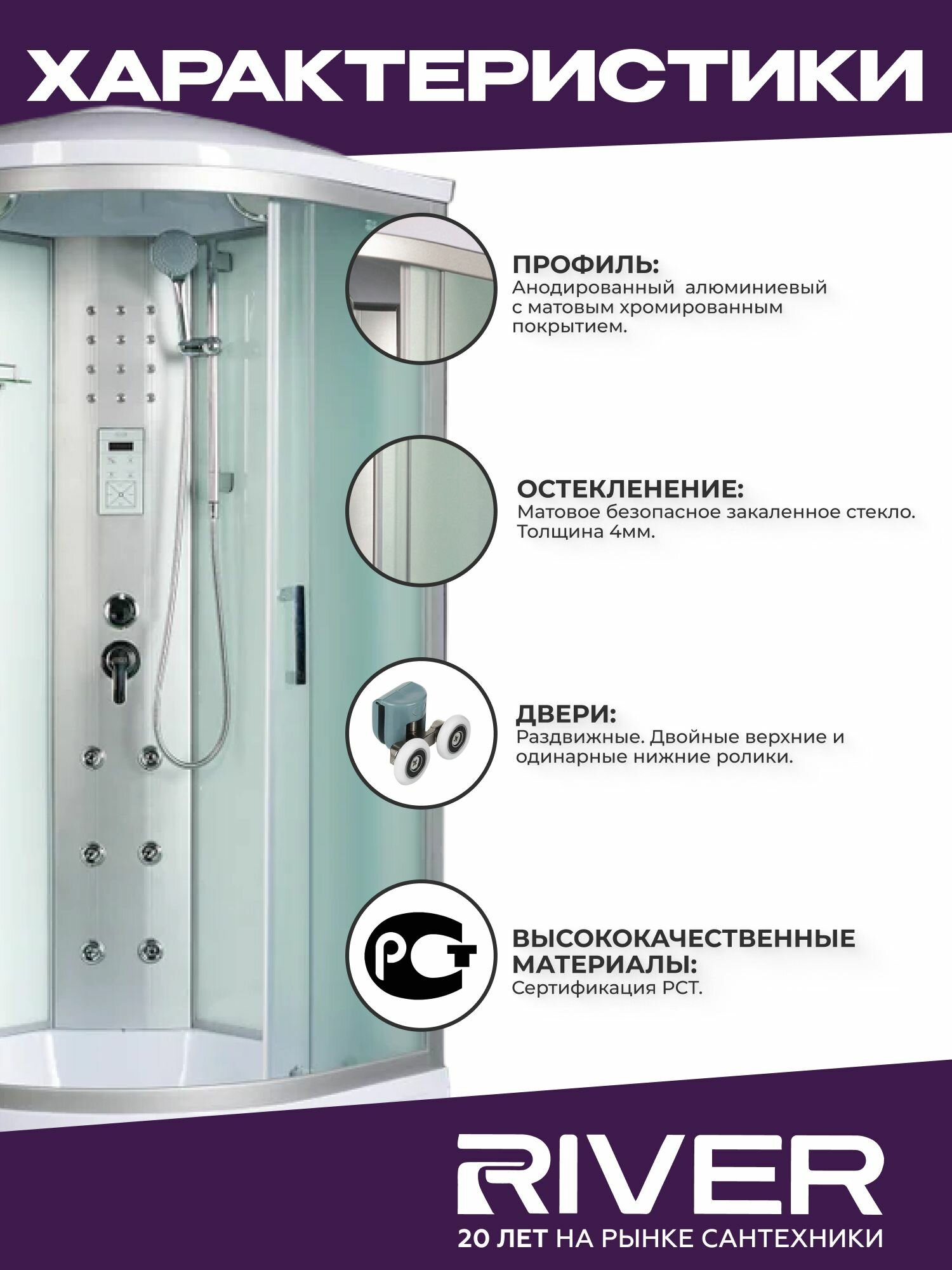Душевая кабина River DUNAY (100x100) средний поддон, стекло матовое, универсальная информация:
