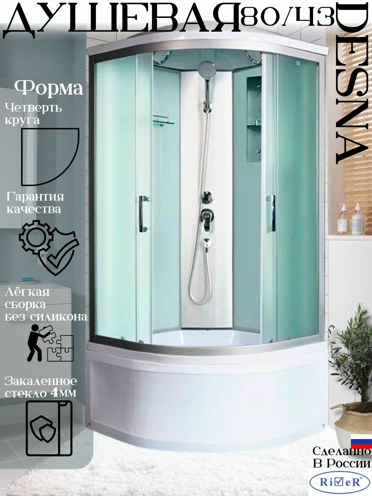 Душевая кабина River DESNA 80/43 MT (80*80) матовое стекло, глубокий поддон информация:
