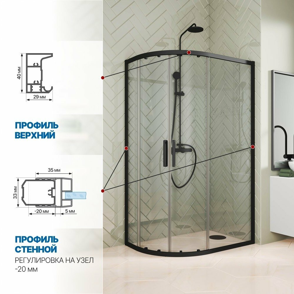 Душевой уголок GWMPKB018RB 105x90 см, цвет фурнитуры хром матовый, цвет стекла бесцветный, стекло закаленное 6 мм 43 340 ₽