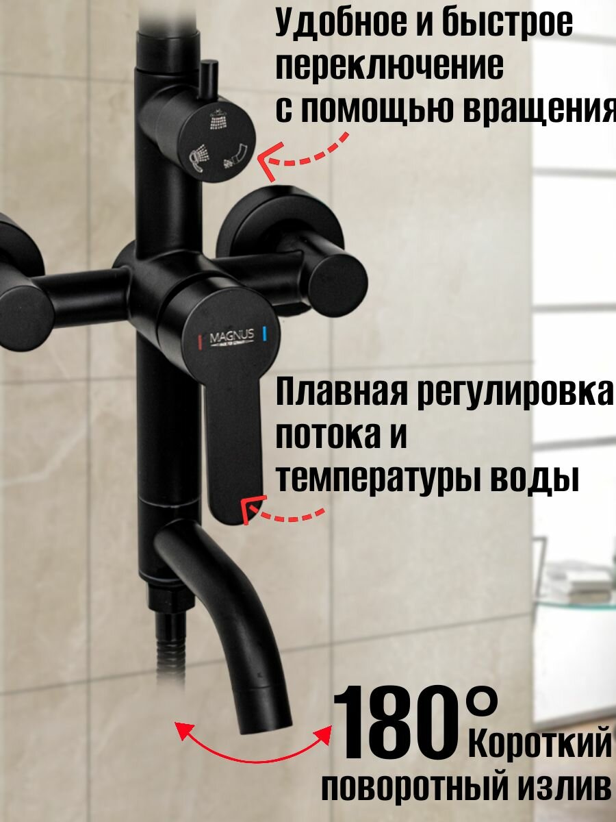 Отзывы на Смеситель + стойка душевая "тропический душ", с двумя круглыми лейками, из нержавеющей стали марки 304, цвет черный.
