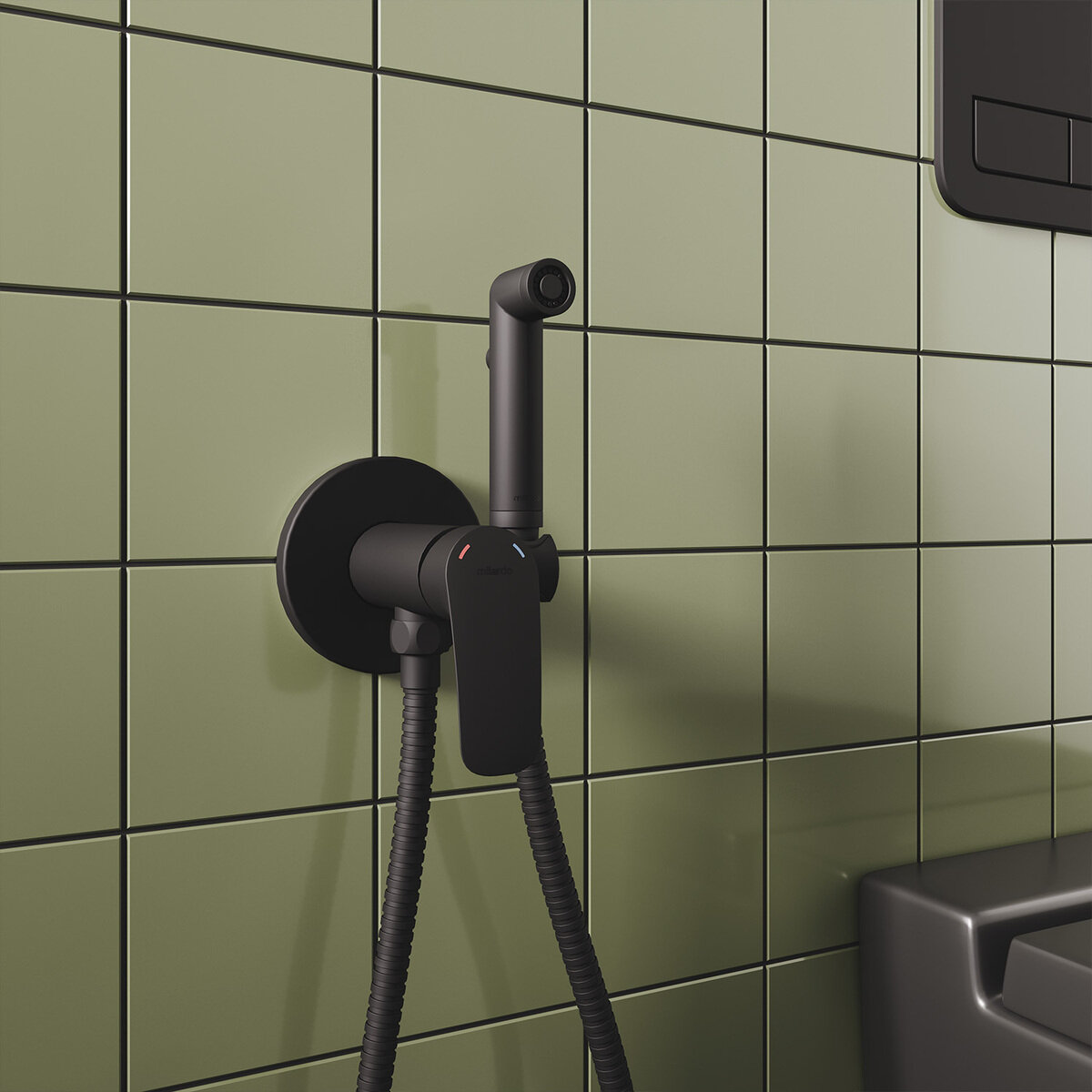 Встраиваемый смеситель Milardo Rora RORBLR0M08 с гигиеническим душем черный матовый информация: