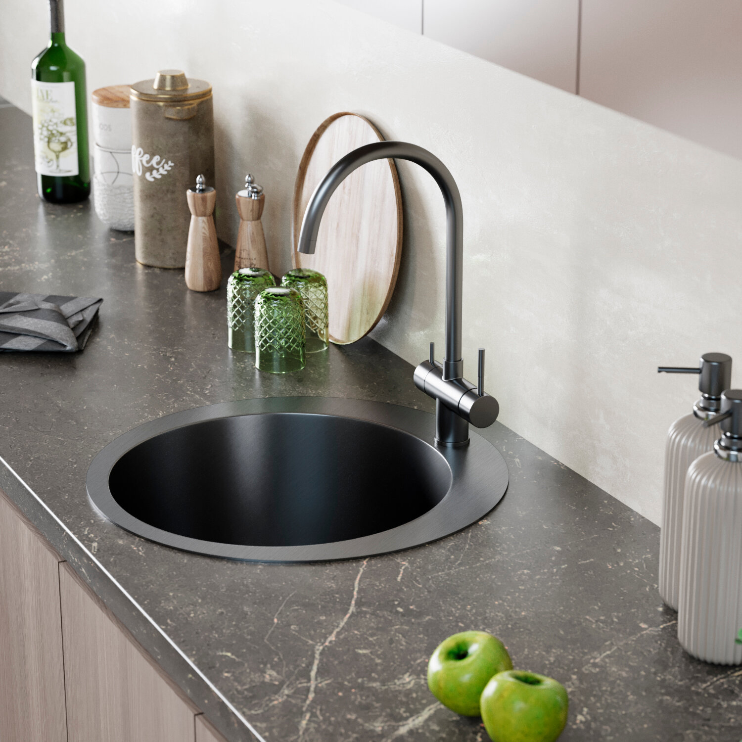 Отзывы на Мойка для кухни из нержавеющей стали врезная круглая 50 см FLEX, с сифоном, черная