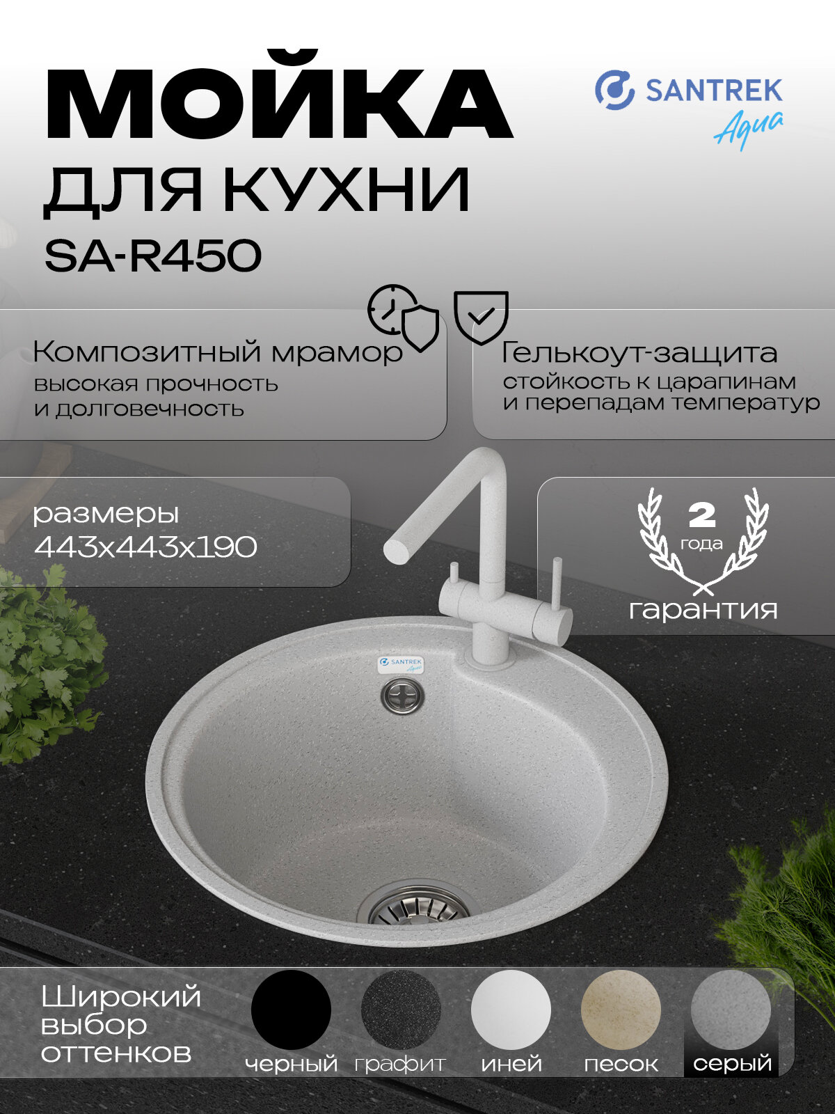 10 цен на Мойка SANTREK AQUA ROUND SA-R450 D443 мм, круглая (серый-310) (без сифона)