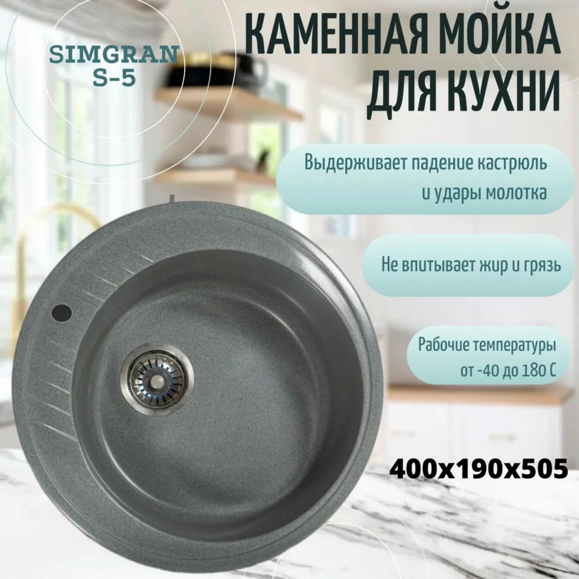 10 цен на Мойка кухонная каменная SimGran S-5 , Темно-Серый, врезная, круглая, 400х190х505, SimGran