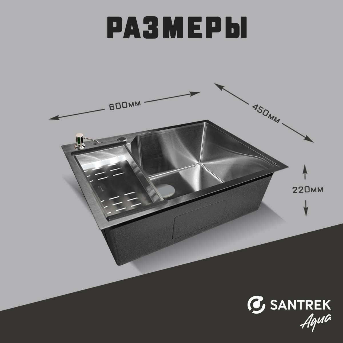 Отзывы на Мойка врезная из нержавеющей стали SANTREK AQUA 600х450х220 т 3,0 сатин D6045NS (+ сифон + дозатор + коландер 440х220)