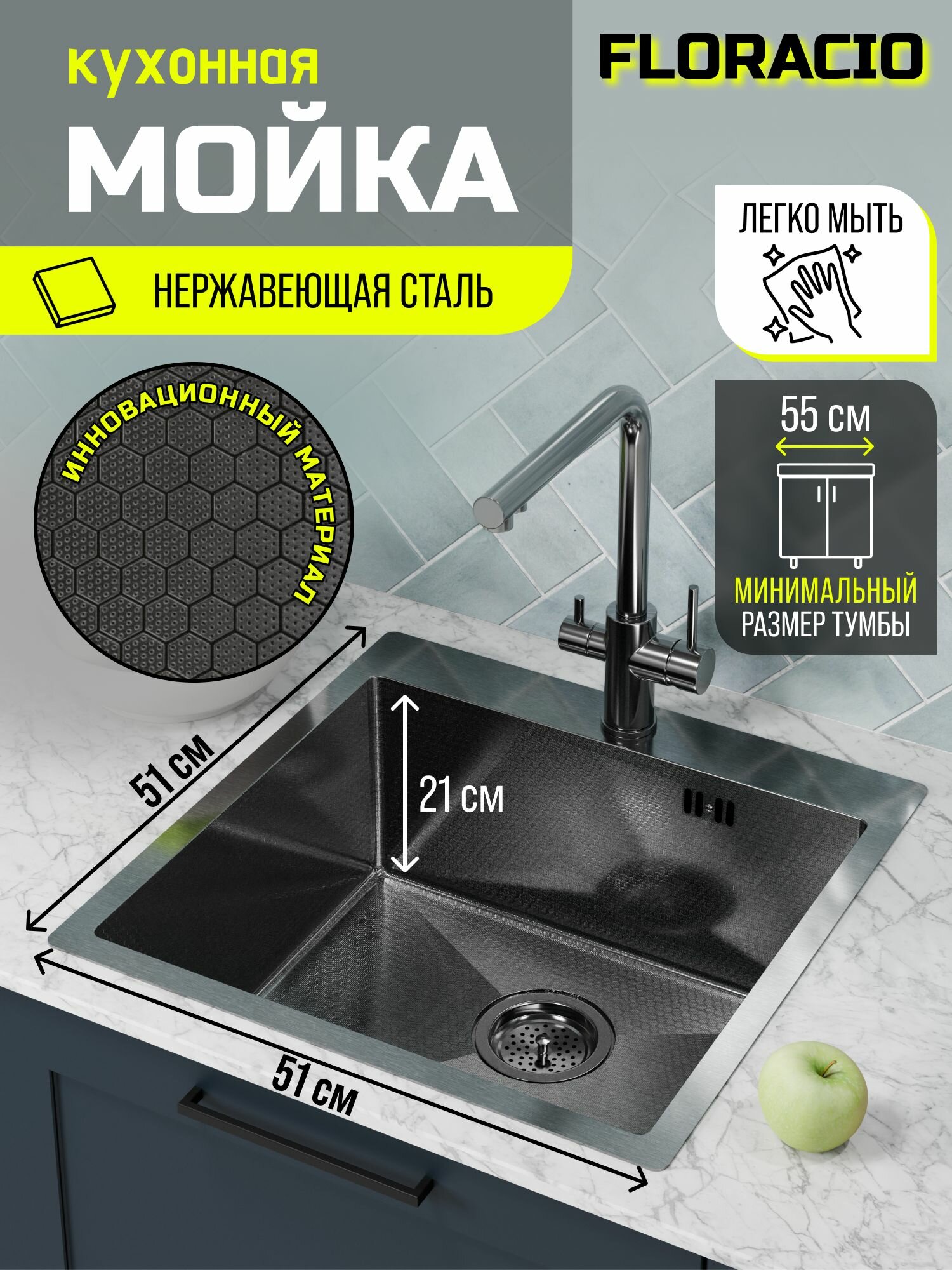 Отзывы на Кухонная мойка FLORACIO Steel F.5151. GMD (DECOR), вороненая сталь