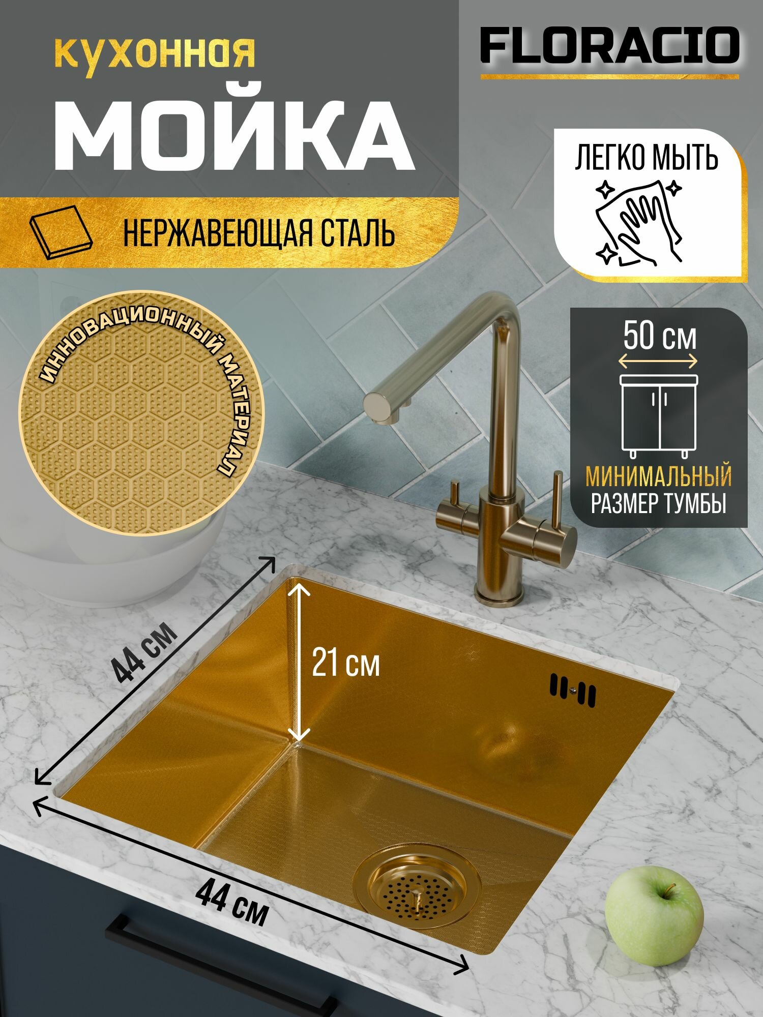 10 цен на Кухонная мойка FLORACIO Steel F.4444. GDD (DECOR), золото матовое