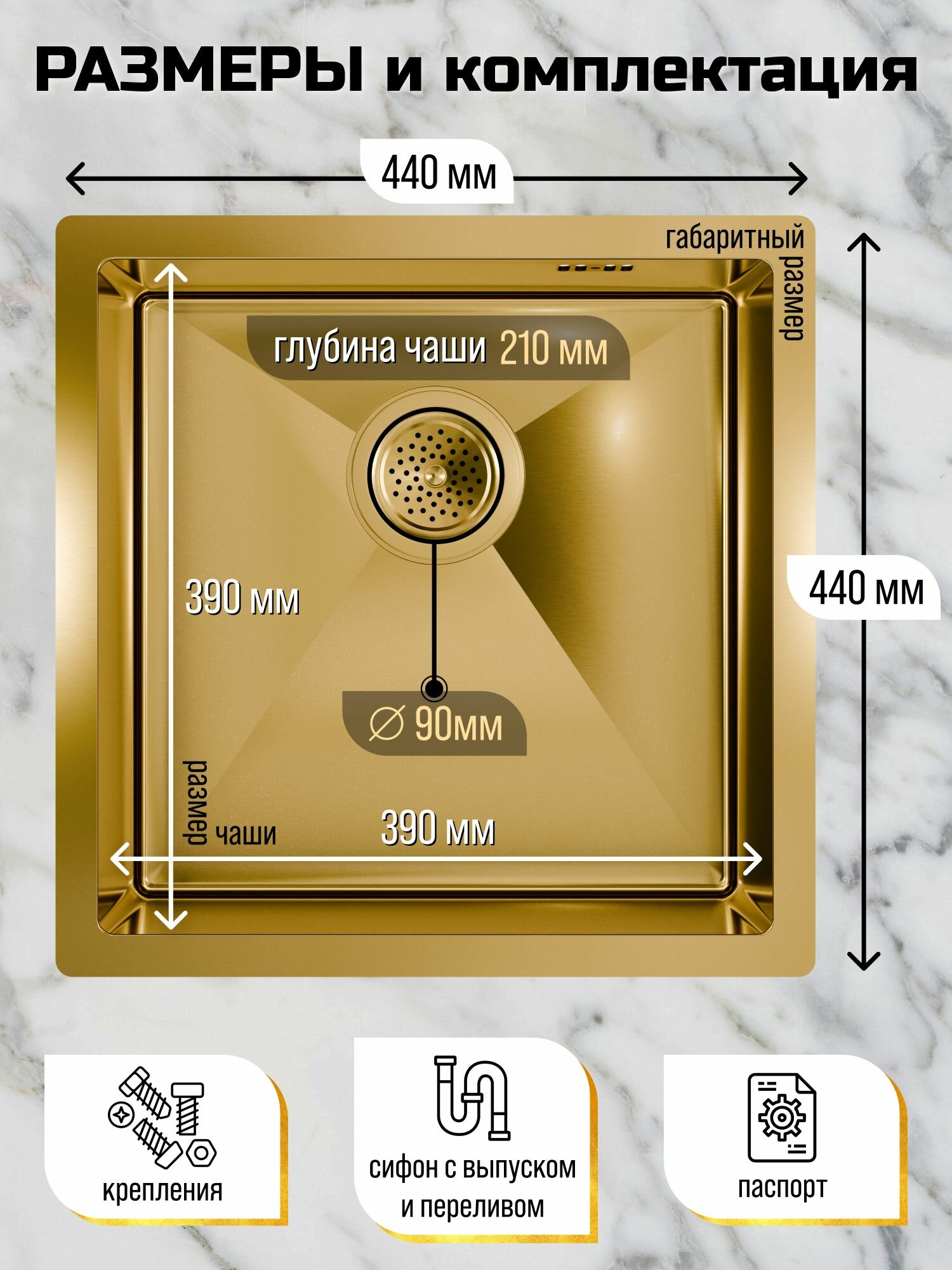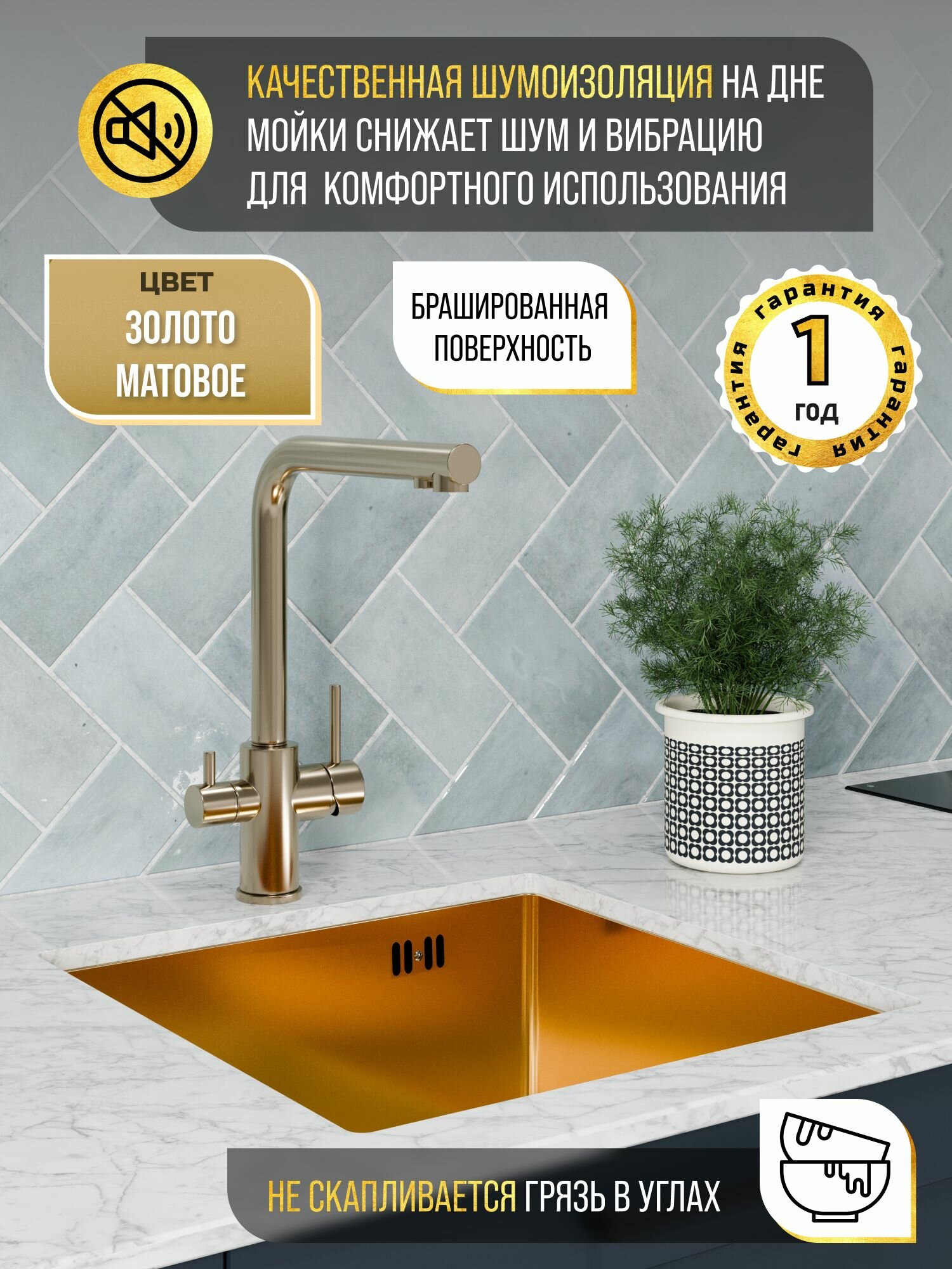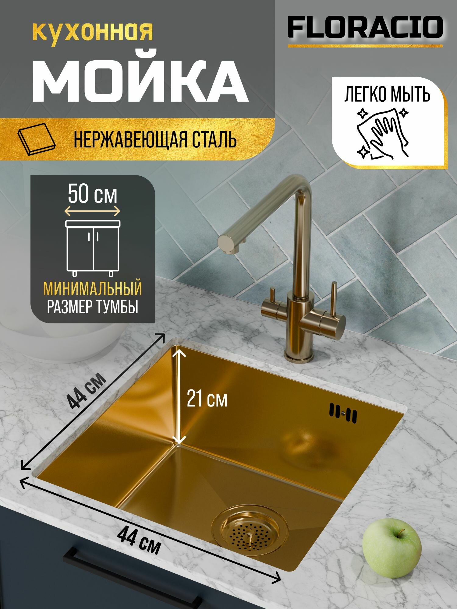 Кухонная мойка FLORACIO Steel F.4444. GD, золото матовое информация: