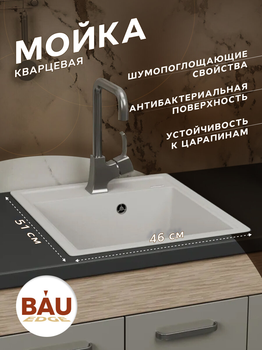 10 цен на Мойка для кухни врезная кварцевая в комплекте с сифоном BAU Stil Jasmine 46х51, жасмин