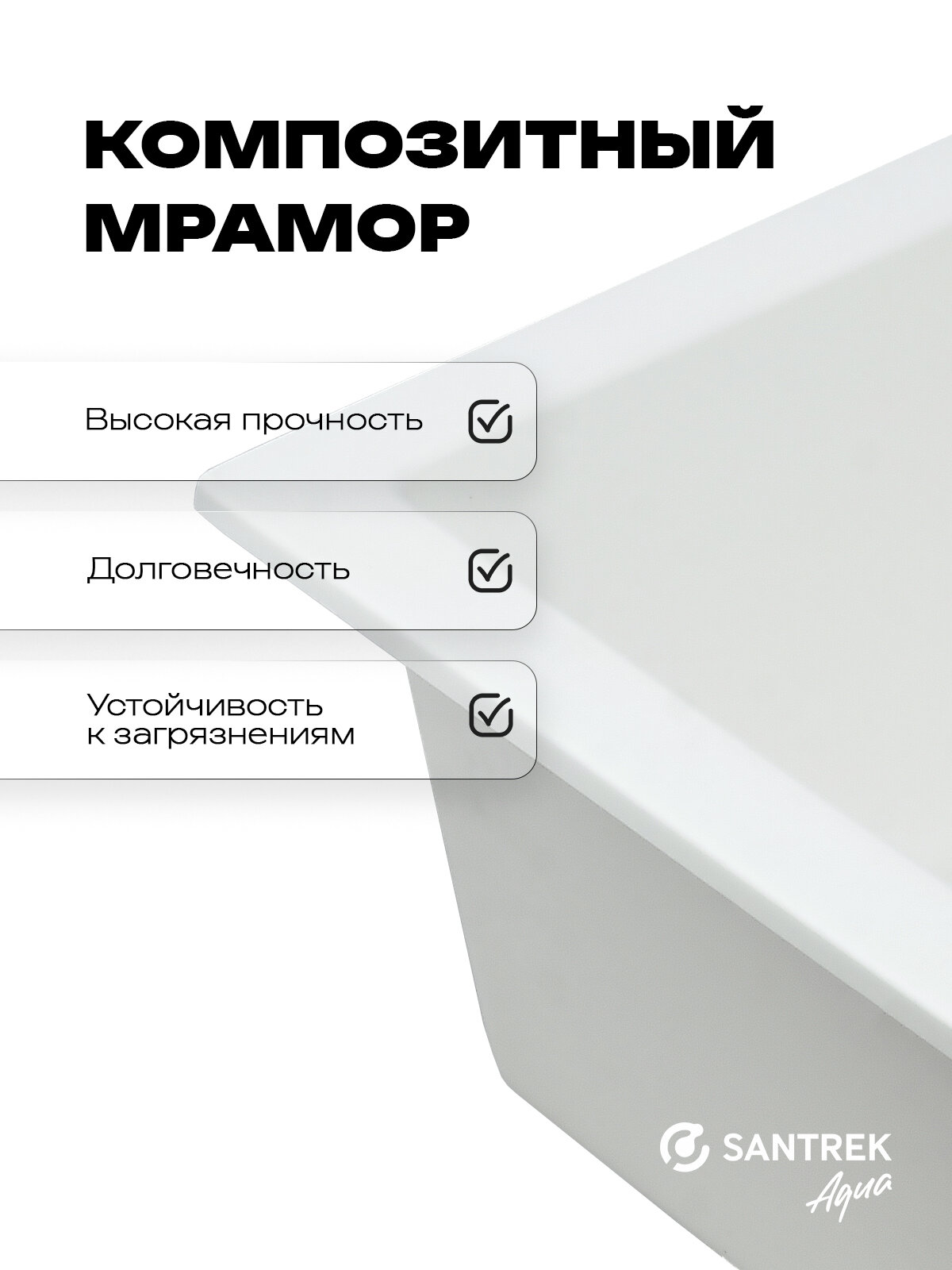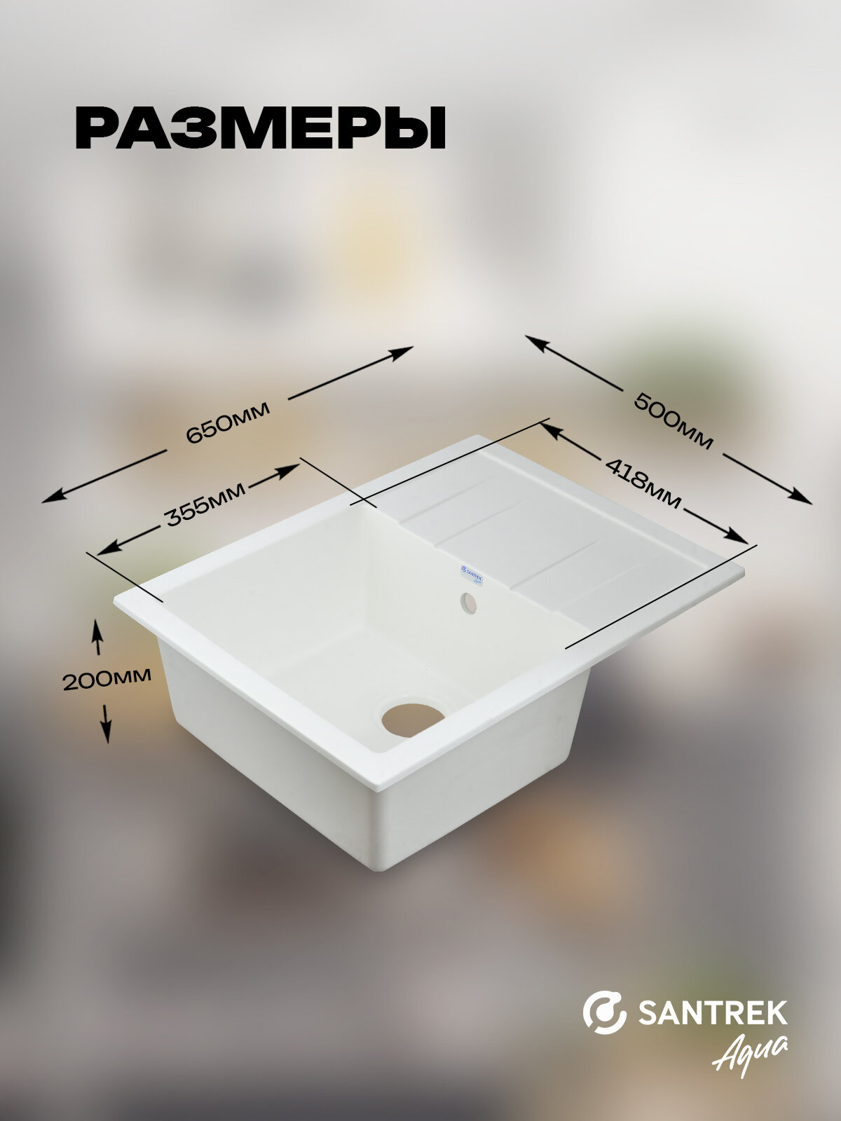 Отзывы на Мойка SANTREK AQUA SQUARE SA-S650L чаша + крыло 650*500 мм (иней-321) (без сифона)
