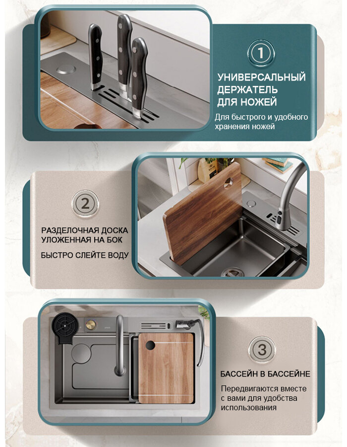 0 отзывов, средняя оценка 0. Чтобы купить «Раковина для кухни из нержавеющей стали 75*45, сотовое тиснение многофункциональная Мойка для кухни» по лучшей цене мы сканируем авито, алиэкспресс, маркет, озон, савеловский, плеер, горбушку, беру, официальные сайты и находим минимальную. Администрация не несет ответсвенность актуальность цен на Раковина для кухни из нержавеющей стали 75*45, сотовое тиснение многофункциональная Мойка для кухни, более подробно узнавайте на сайте магазина.
