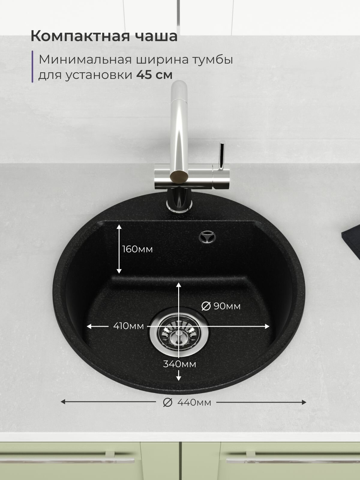Мойка NOVA 44 , круглая, врезная, кварцевая, чёрная, матовая информация: