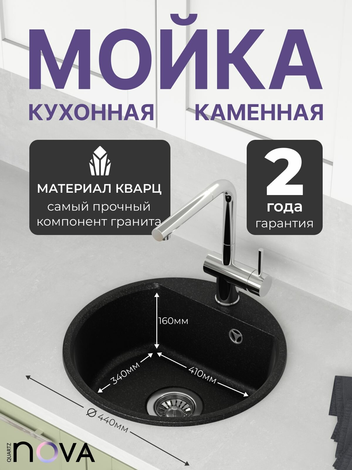 10 цен на Мойка NOVA 44 , круглая, врезная, кварцевая, чёрная, матовая
