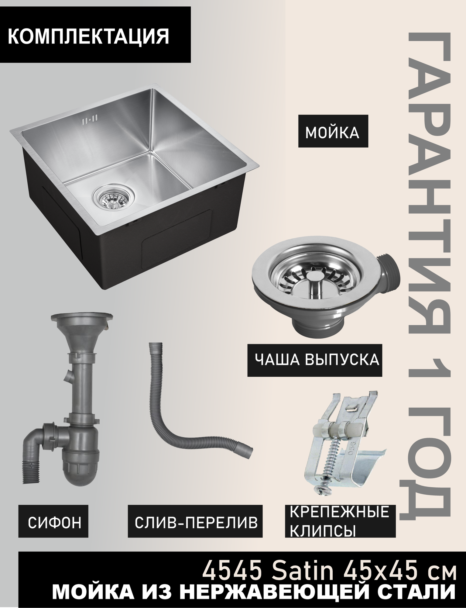 10 цен на Мойка кухонная 45х45 см сатин, нержавеющая сталь, квадратная, PVD покрытие