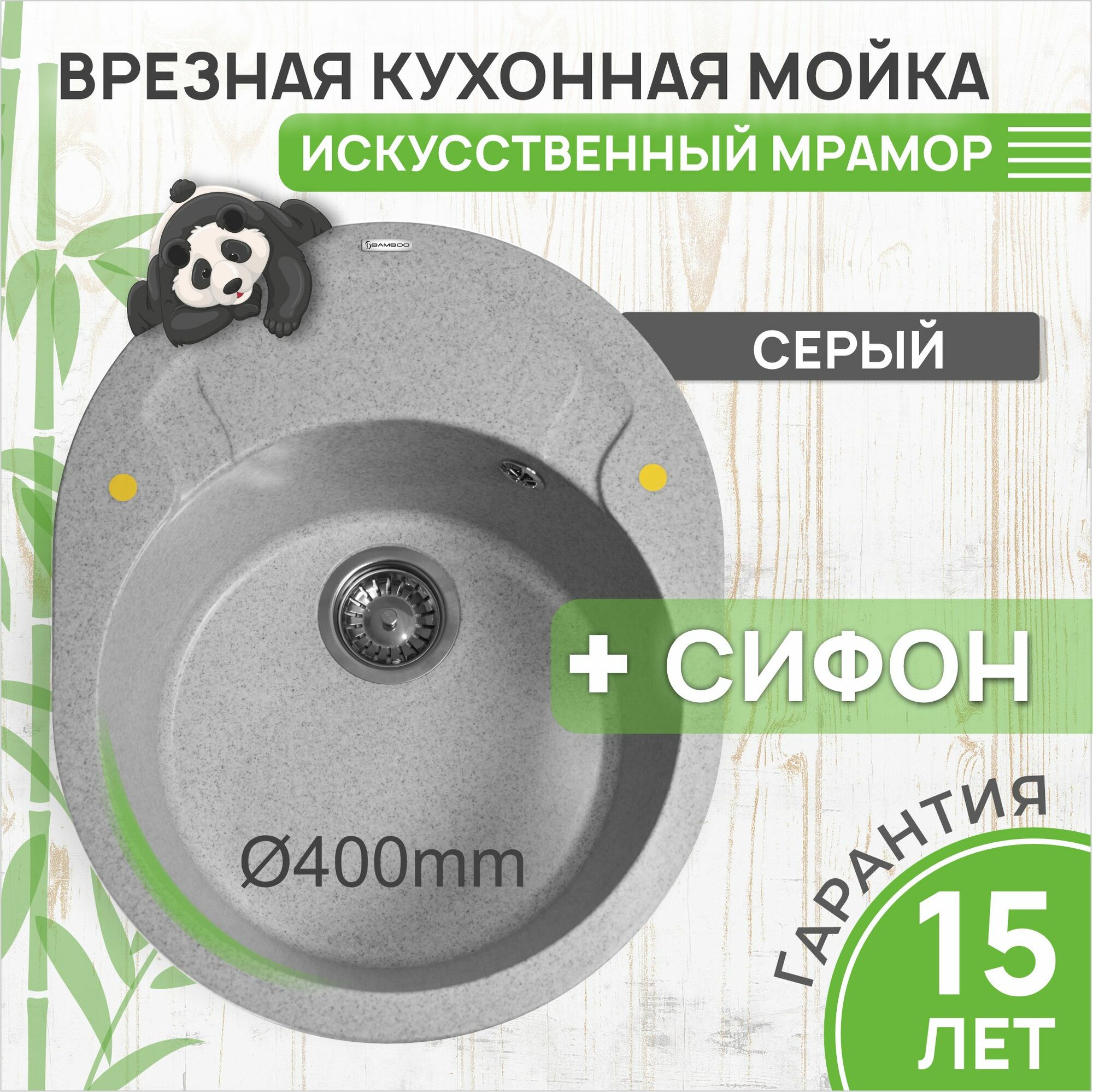 Кухонная мойка Bamboo Palma 580, серый, искусственный камень, круглая форма информация: