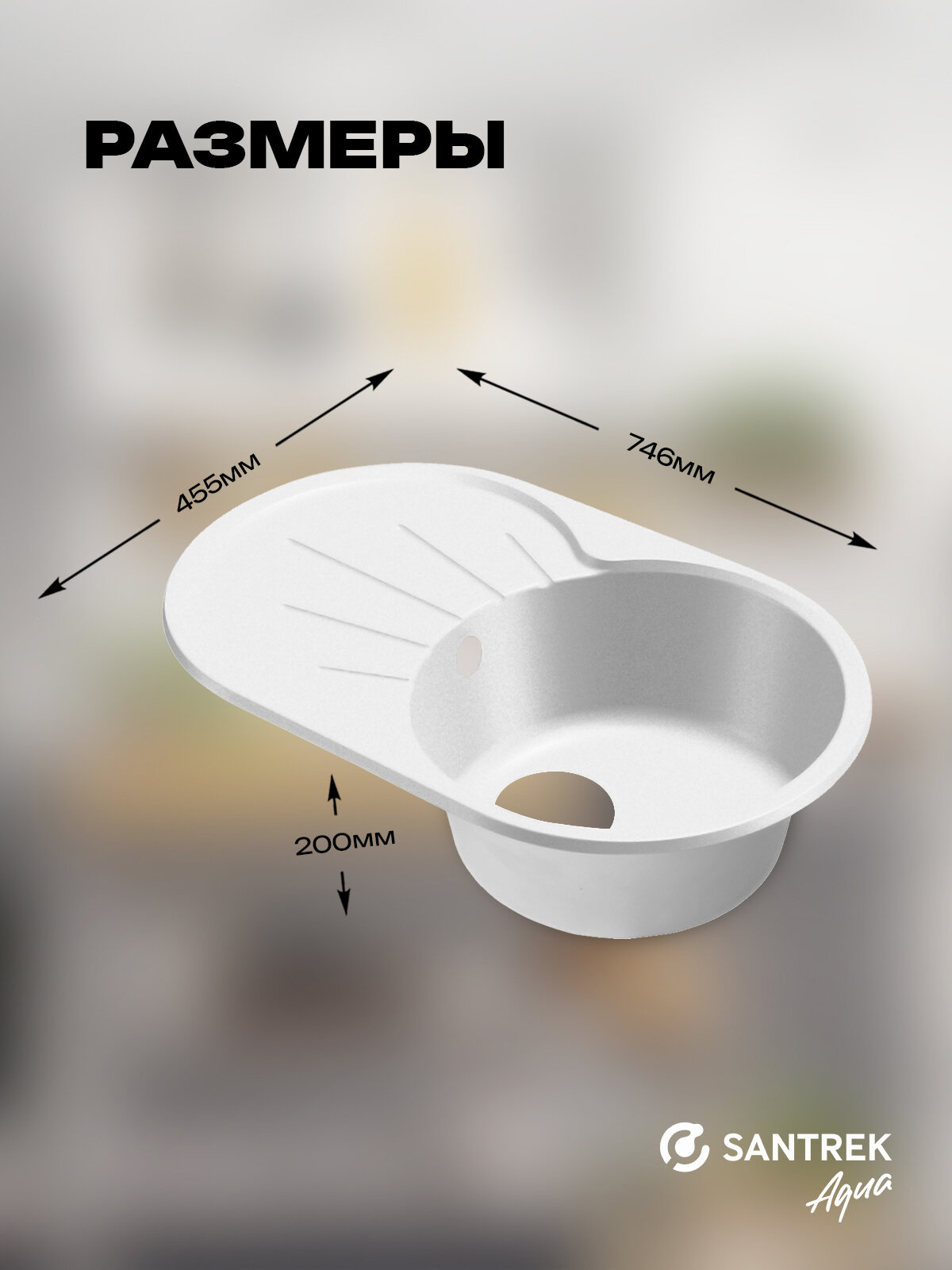 Мойка SANTREK AQUA ROUND SA-R750L чаша + крыло 750*460 мм (иней-321) (без сифона) информация: