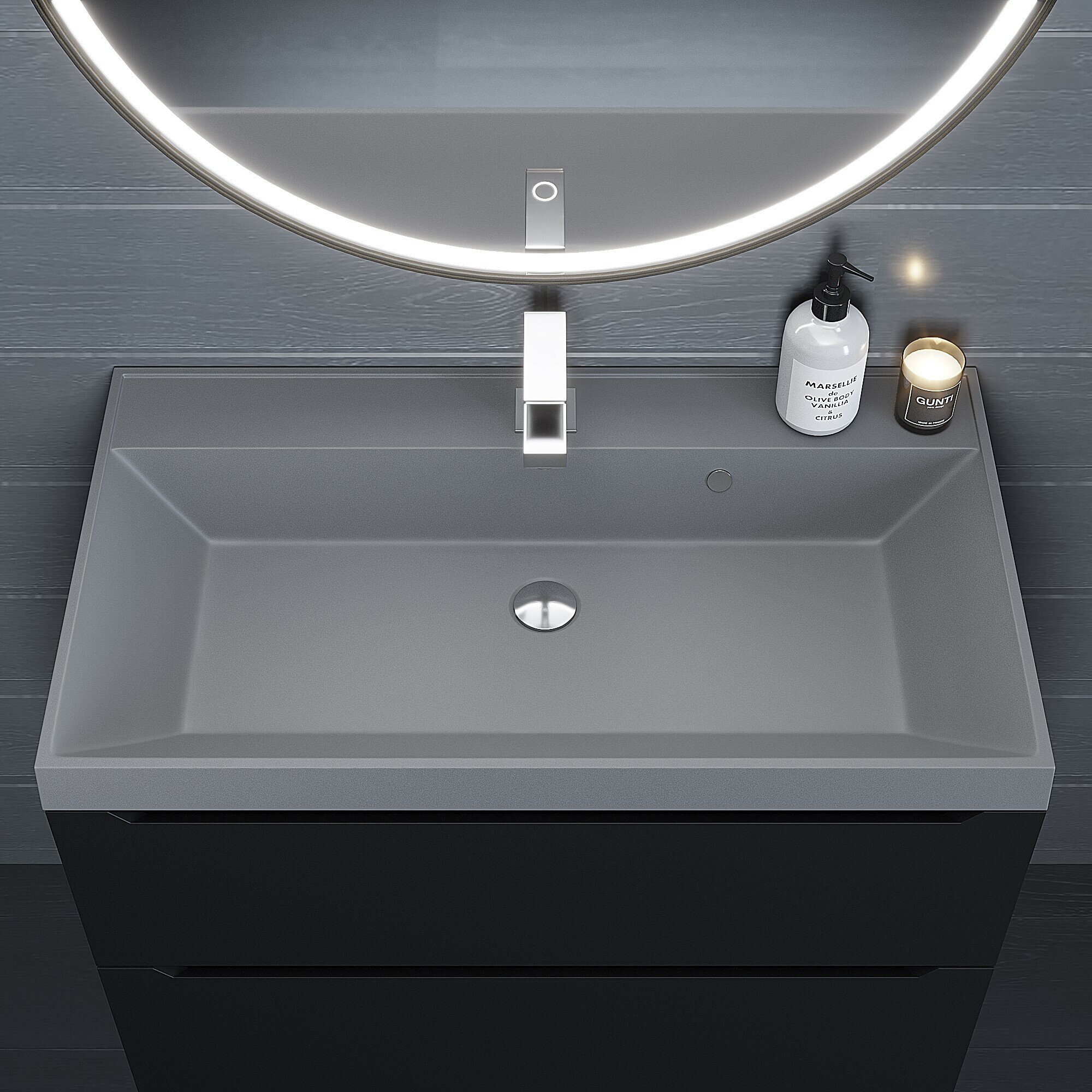 Отзывы на Раковина кварцевая для ванной Uperwood Classic Quartz 80х45х15 см, серая матовая, бетон