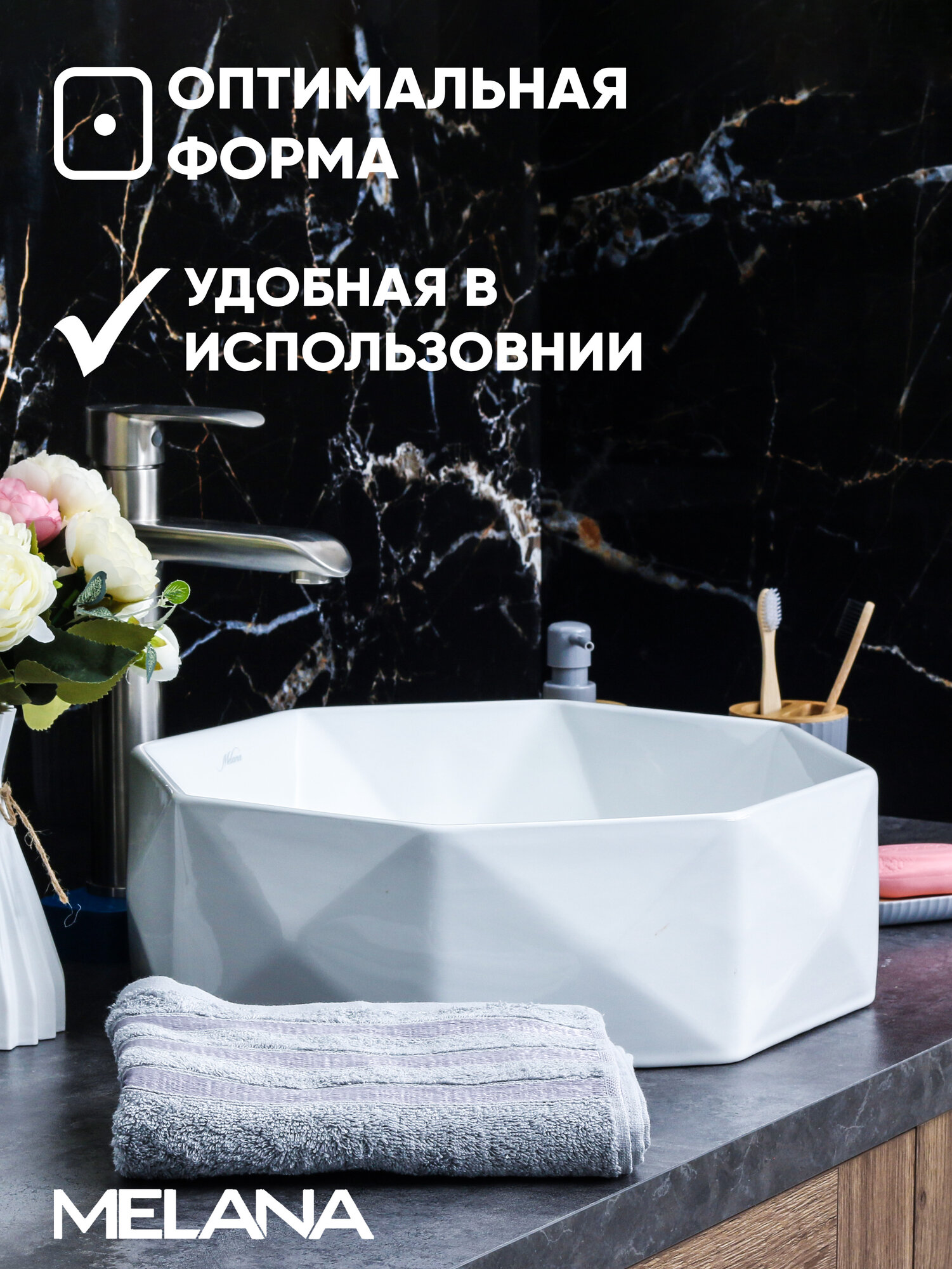 Раковина Melana MLN-78347, накладная, фаянс, белая, 42х13 см информация: