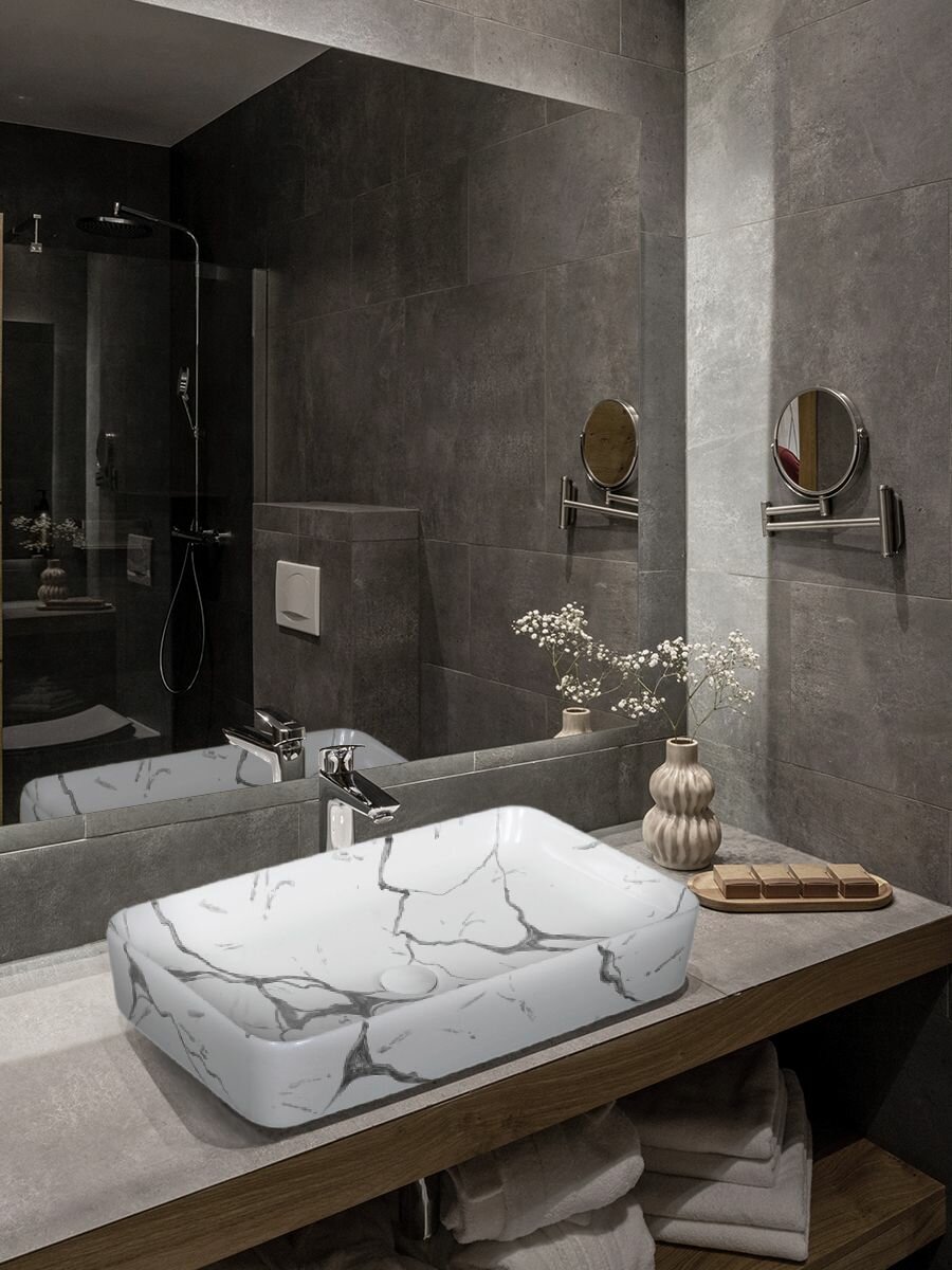 Раковина накладная Magnate THIAGO, белая с серым, керамическая, 11x61x35 см 14 700 ₽