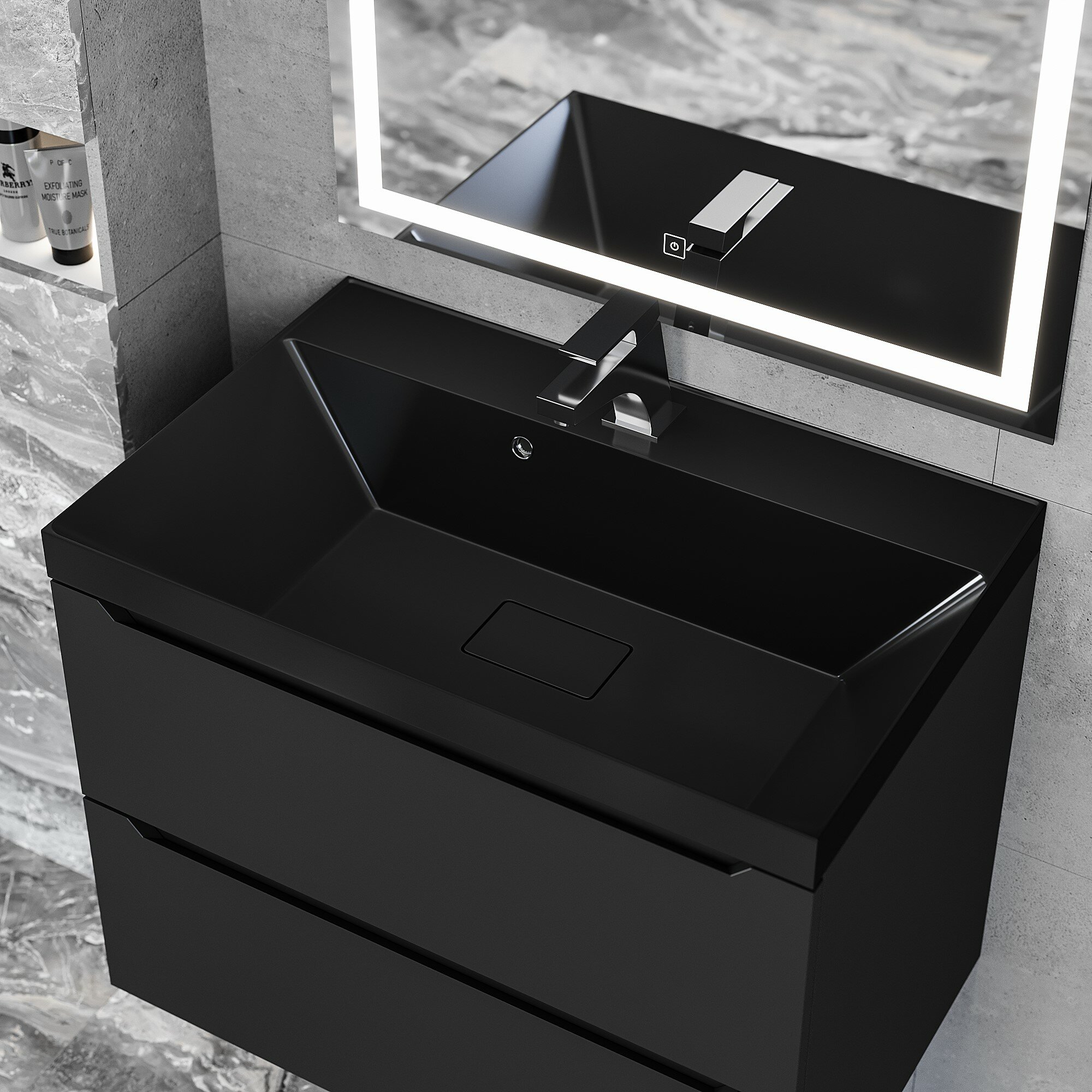 10 цен на Раковина для ванной Uperwood Classic New 70х45х16,3 см, черная глянцевая, с накладкой для слива