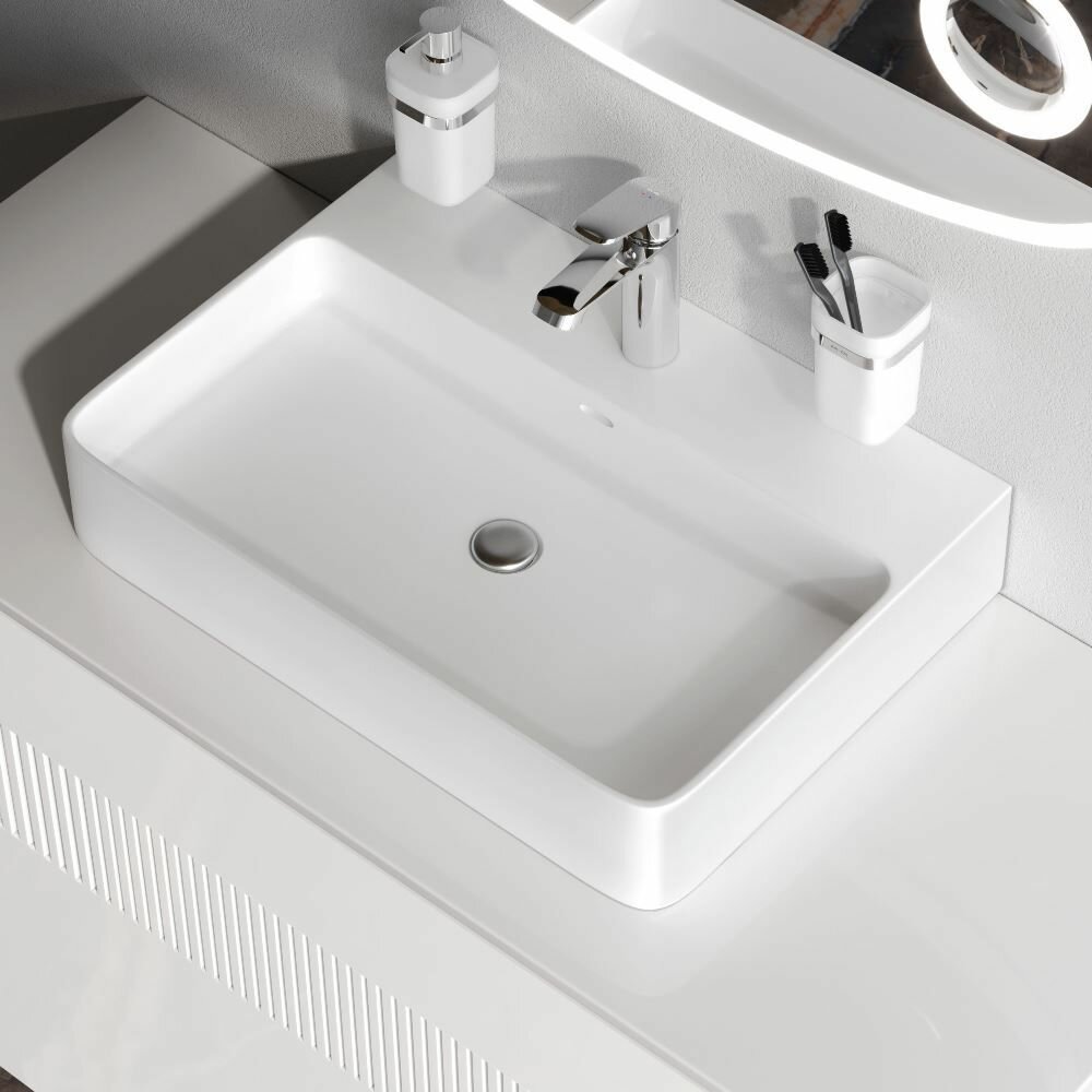 Раковина для ванной AM.PM Func накладная 60 см, прямоугольная с пьедесталом, цвет белый глянец информация: