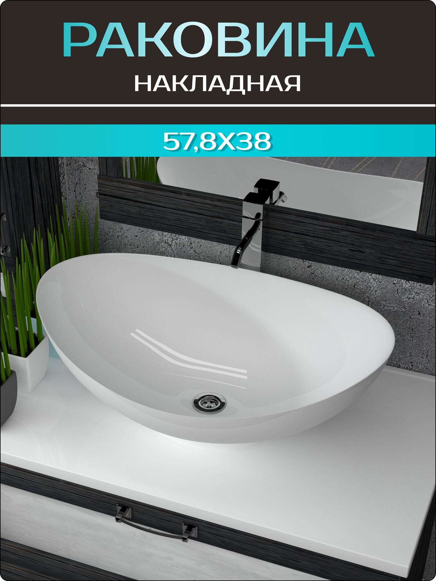 Накладная раковина в ванную комнату "Ореол", мебельная, белая информация: