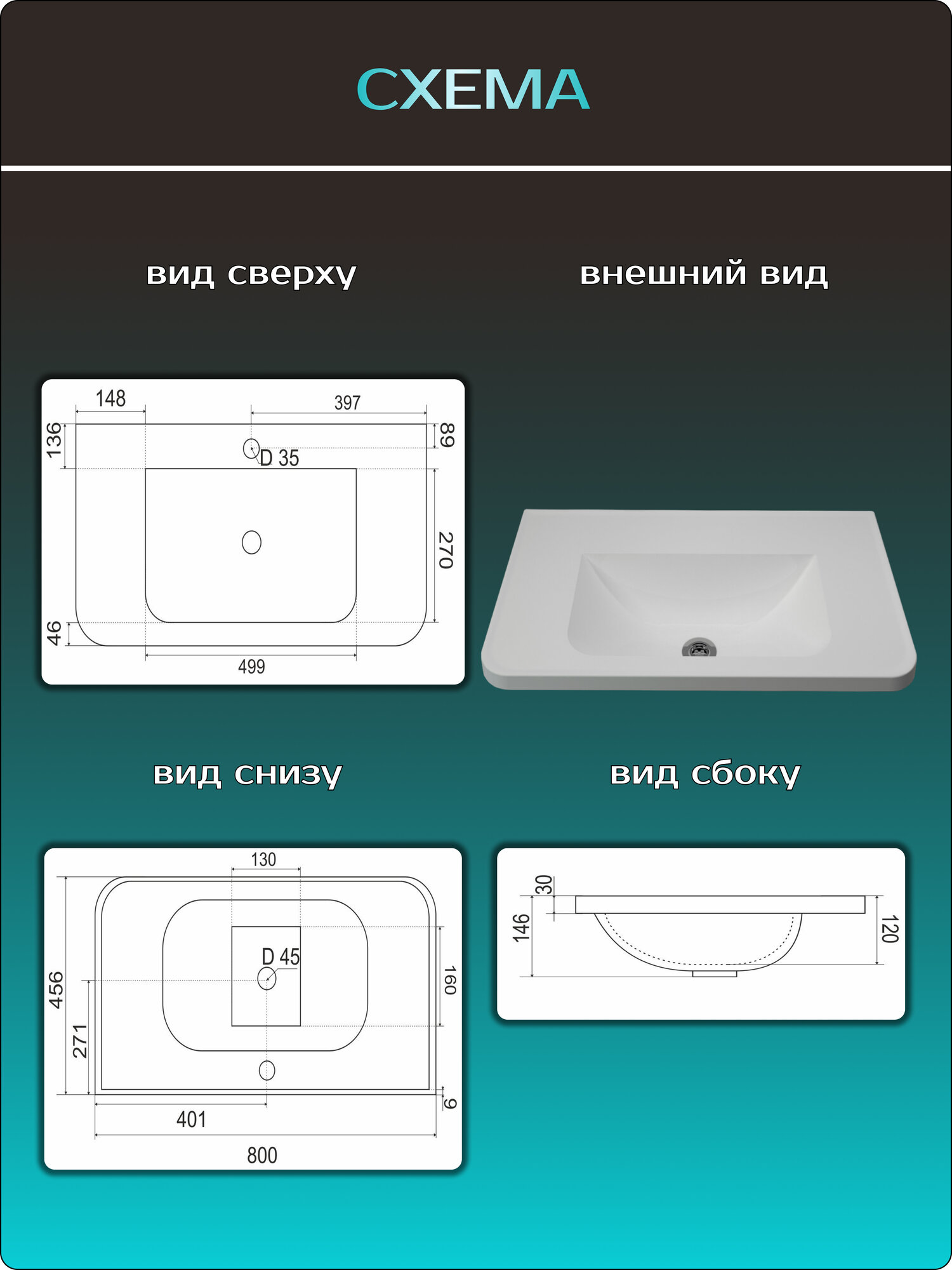 Накладная раковина в ванную комнату "Рикко 80", белая, 80х45 информация: