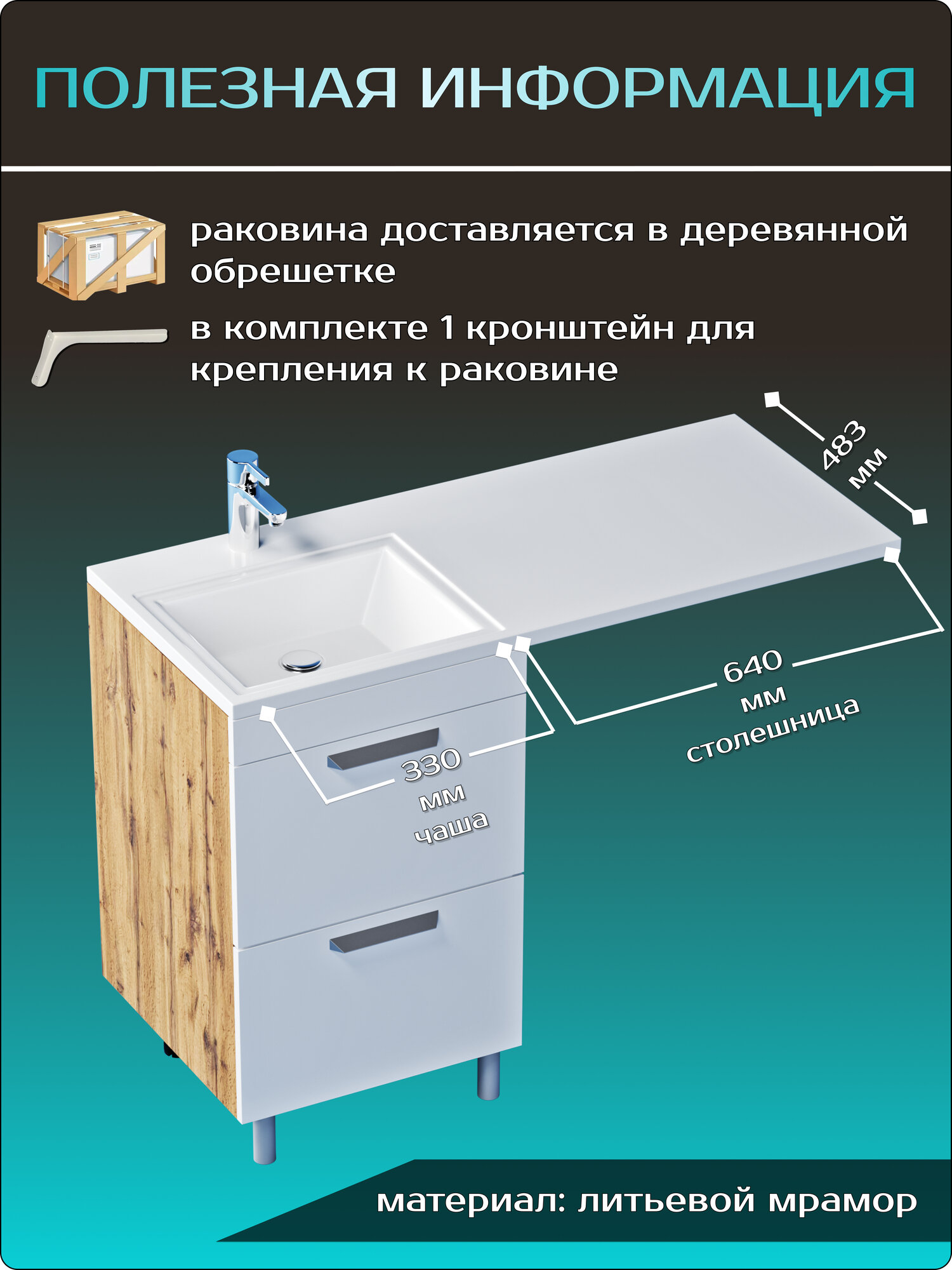 Подвесная раковина в ванную комнату "Марсал 100 левая", белая информация: