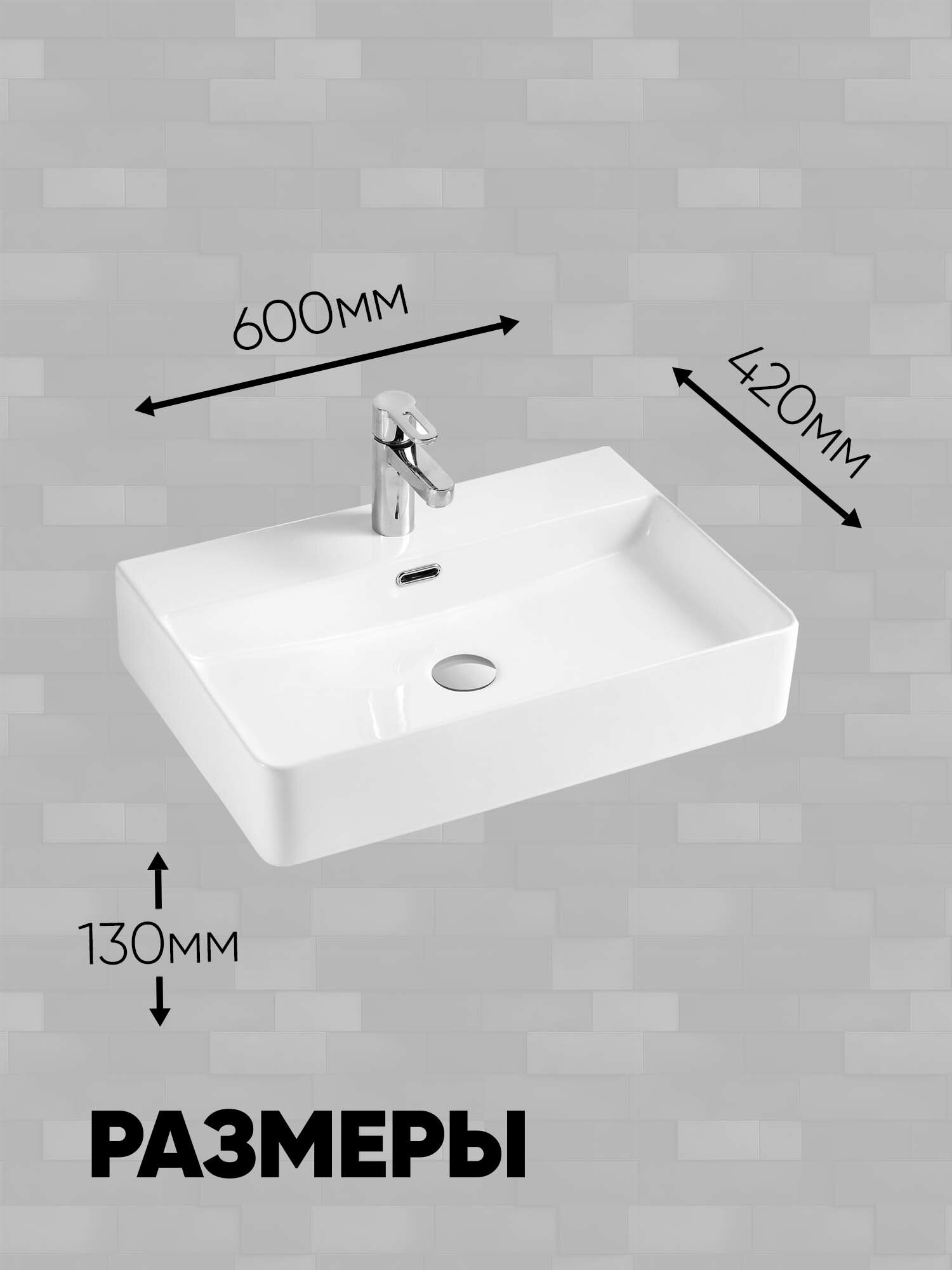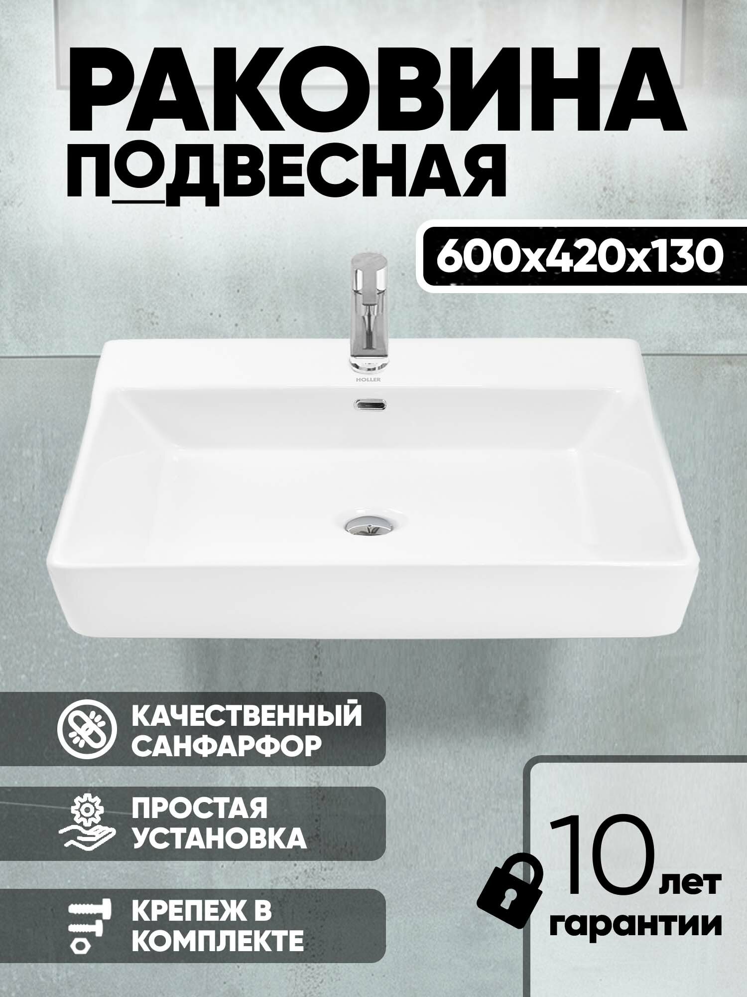 10 цен на Раковина подвесная K-6207 (600*420*130мм), белая (+ крепеж)